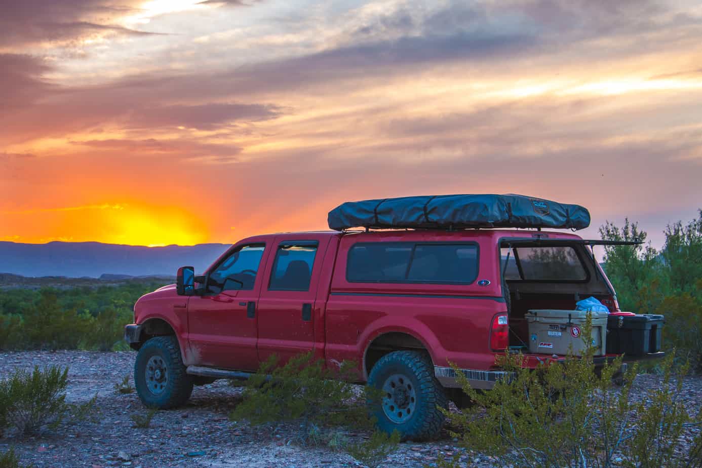 Lighting flashed outside my window, followed quickly by the low rumble of thunder in the distance. It seemed the storm had finally rolled in, and I watched as it painted the Texas sky with brief silhouettes of the Chisos mountains. Rubbing my eyes, I checked my watch. It was just after 1:00 a.m. and the wind was starting to pick up. I laid back down and listened to the patter of rain on the roof. I’ve always liked rain when camping; it’s calming, almost cozy in your tent or vehicle. The steady rhythm had just started to lull me back to sleep when a distinct clack echoed off the windshield. No. Another clack, then another—please no. I shot back up and looked outside. Hail. The cracking and popping from the impacts on our trucks grew louder, and soon the sound of ice on metal was deafening. I stared out the window cringing with every hit on the hood. With no cover nearby and no way to shield the truck, I resigned myself to listening to music and drowning out the noise.
