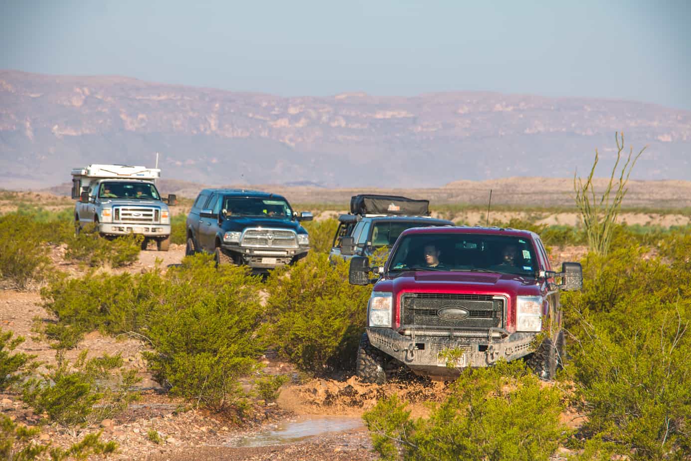 My cheap radio crackled to life, and an almost inaudible voice came over the speaker. “Are they from our group?” Two lifted trucks were parked at the fuel station, one sporting an aftermarket bumper and winch, and the other with a light bar on the roof. “I honestly can’t tell, but they could be.” In any other part of the world, it would have been easy to distinguish a gathering of full-size overland vehicles from the locals, but we were in Texas, a state that accounts for 20 percent of all pickup sales in the United States. As you can imagine, that made our task a little more difficult. Instead of stopping to ask half the town if they were there for the event, we decided to proceed to our campsite just outside the Marathon Motel.