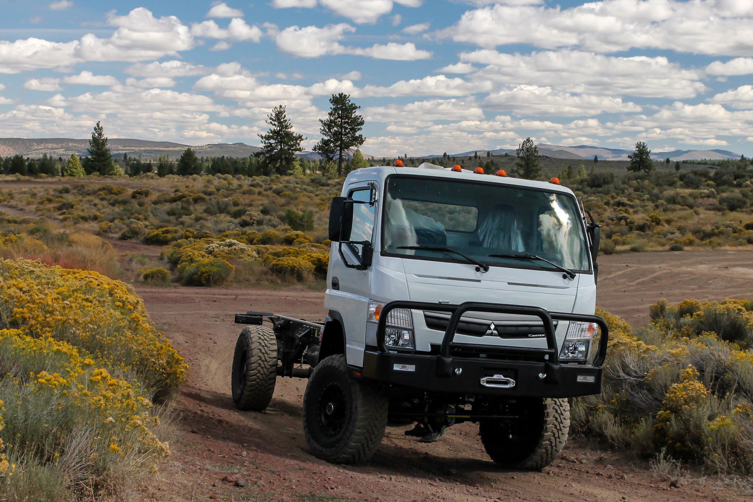 As the overland vehicle market continues to expand, there is more opportunity for recreational vehicle manufacturers to offer commercial and do-it-yourself (DIY) variants of their proven platforms. EarthCruiser is a leader in the cab-over segment, which allows them to leverage their notable experience with 4WD systems and off-highway performance (the founders have decades of offroad racing knowledge). Their new 4WD system is for the Fuso FE single cab and dual cab, and will ultimately be available for the Chevy LCF and Isuzu NPR models cab-over trucks. This system is specifically designed for both high-speed and low-speed capability with Dynatrac axles, a HERO transfer case, Deaver suspension, Radflo dampers, 37-inch Toyo mud terrains, air lockers, Warn winches, and Timbren jounces.