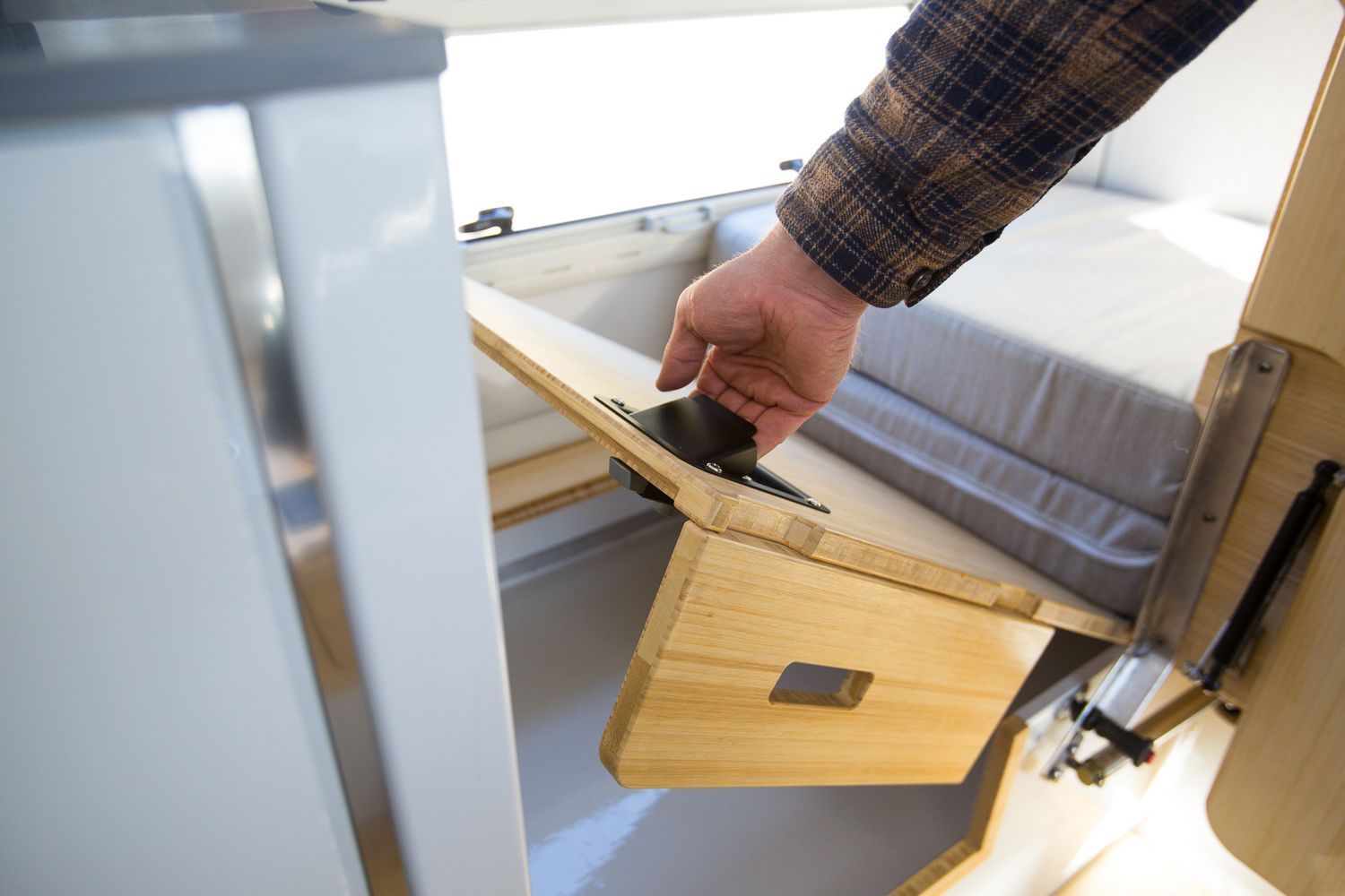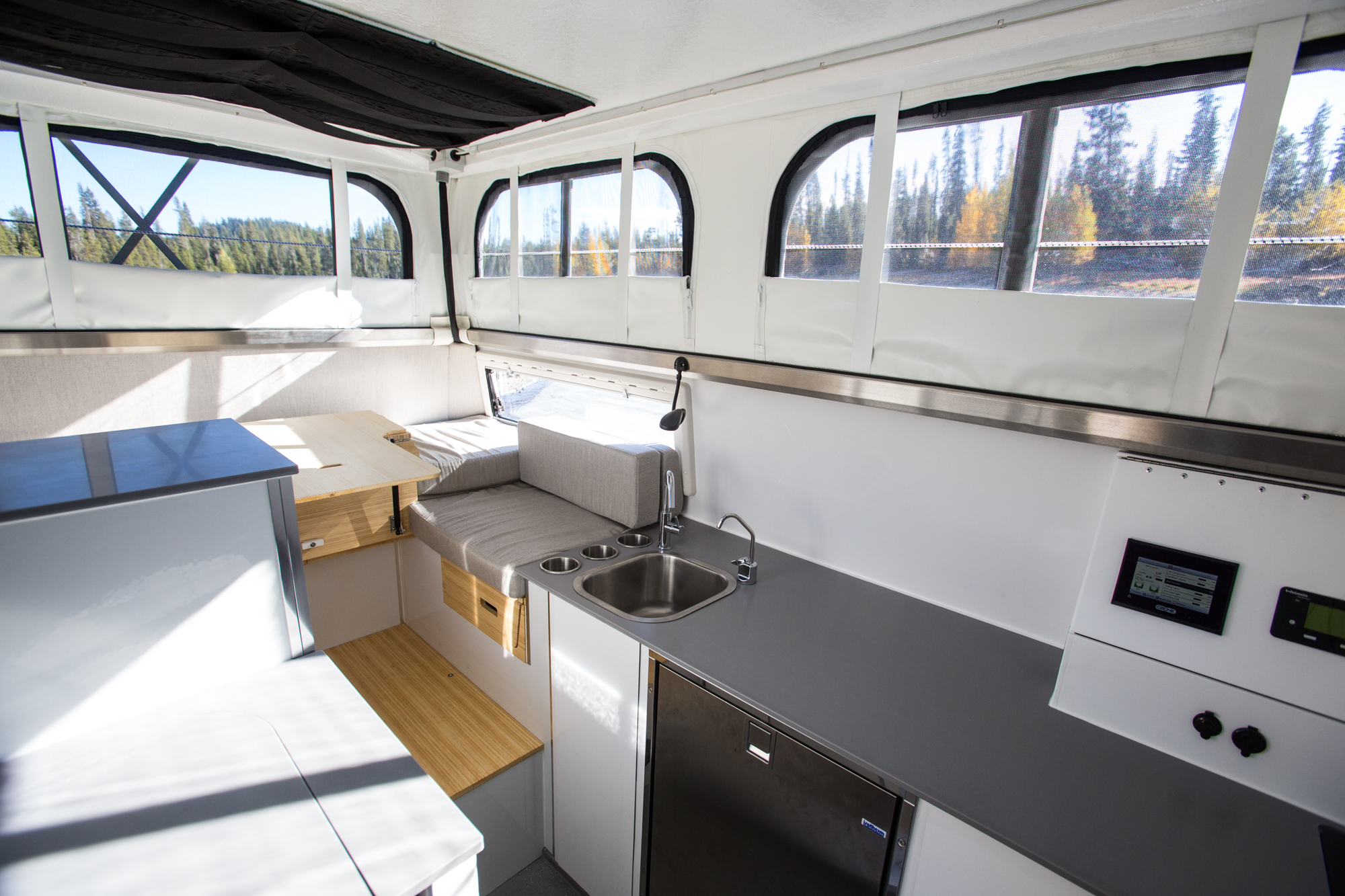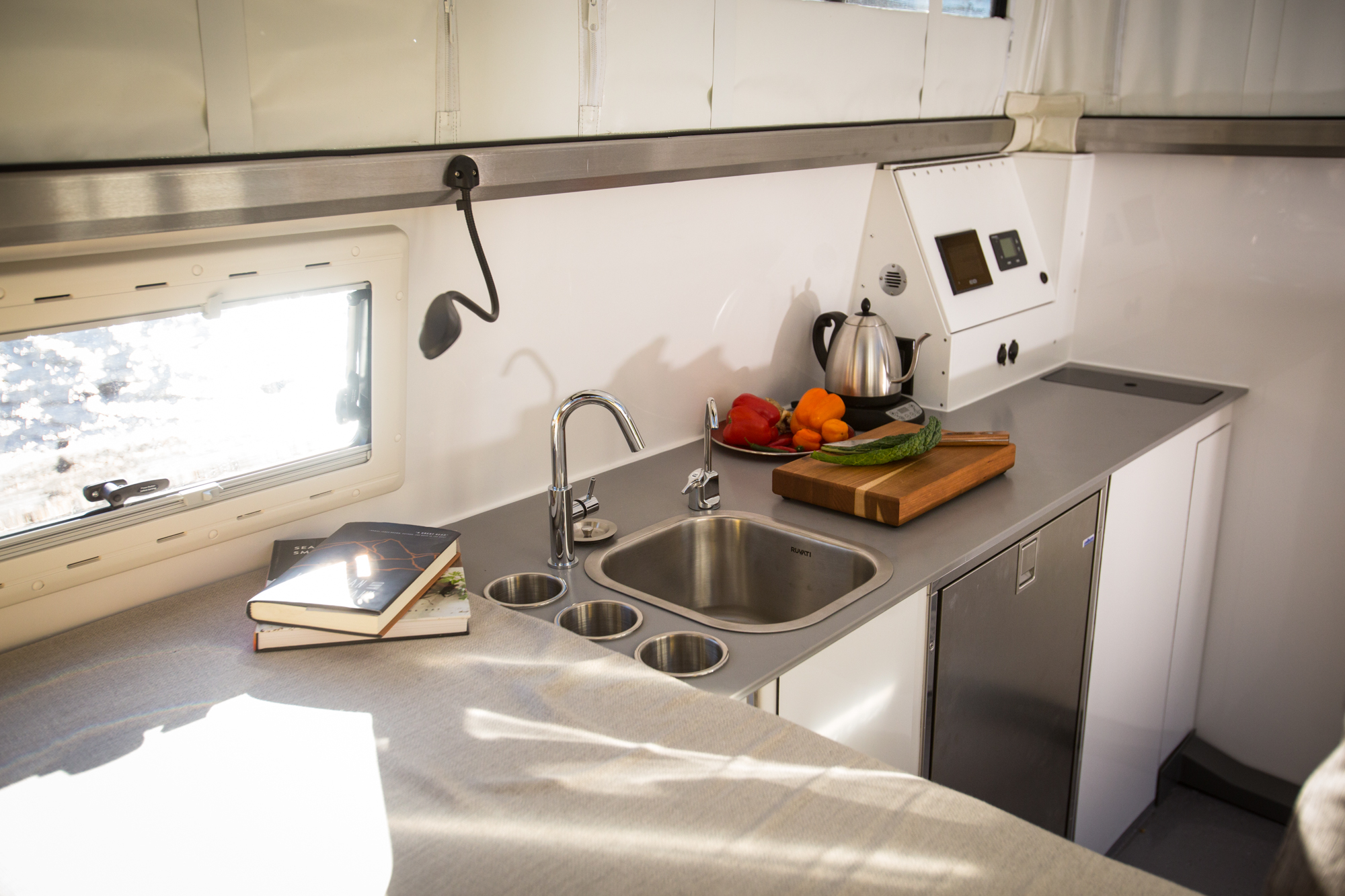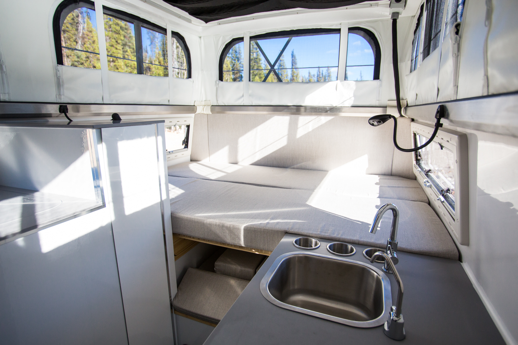 You’ll find this level of forethought throughout the interior and exterior of the vehicle. The water tanks are inside to prevent freezing in subzero conditions, the shower is integrated into the entryway so the mud and grit from shoes and pets can be easily washed out, and the solar panels are shatterproof and recessed into the roof to keep overall height low while preventing them from snagging on overhead branches. Every element is designed to maximize function while minimizing complexity, and that results in an easy-to-use truck you can trust to get you there and back again.