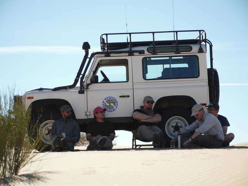 John’s NAS Defender 90 in the foreground, and Ho’s 2004 Discovery II descending the Altar dune field. John has since replaced the Defender 90 with an NAS Defender 110. Less has always been more with John’s vehicles; it took me a few decades longer than John to learn that lesson.