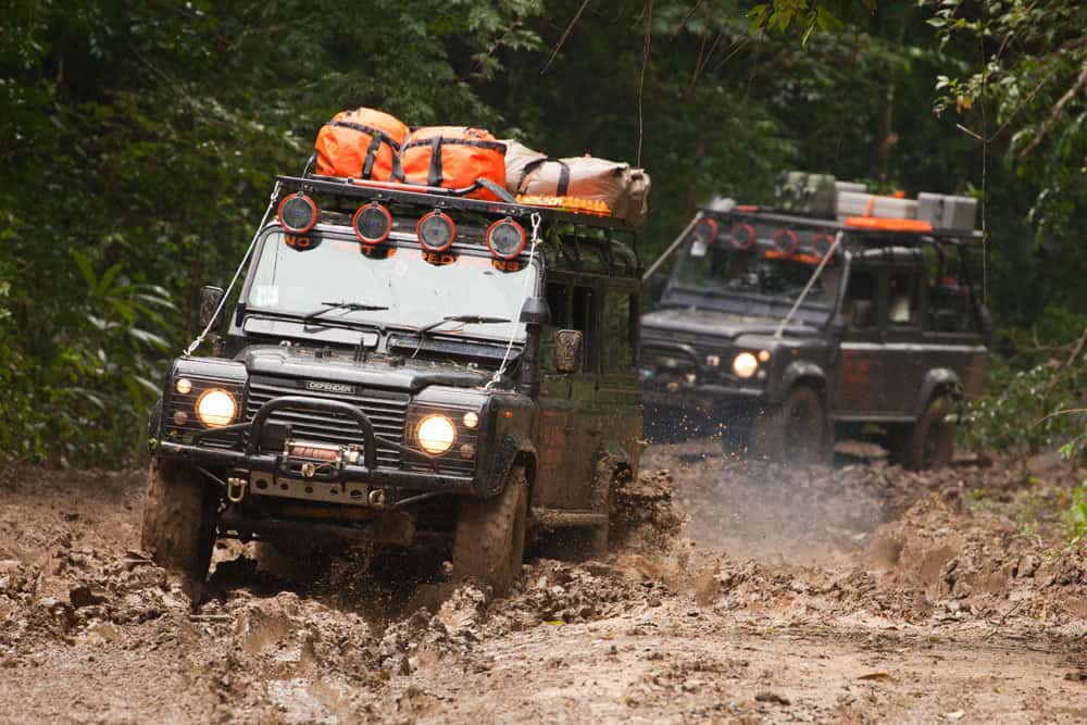 Almost right out of the gate one of the defenders wheeled its way (or was sucked) into what has been appropriately named “Angela’s Ditch.” In an instant the English made diesel powered Defender 110 was helpless. Within a moments notice our lead guide, Graham Jackson, had the trucks winch cable attached to a shallow rooted tree using one of our Secure Tech Tree Savers. Although the tree was shallow rooted as most are around these parts, by placing it at the roots of the chosen winch point there was plenty of hold to allow for a quick extrication. From that time on in the trip there was a constant whine of synthetic line being retrieved by the slow mechanical drums that we call winches. This continued for two miles and several hours before night began to fall on us. All the while the non-relenting rain increased in volume and intensity.