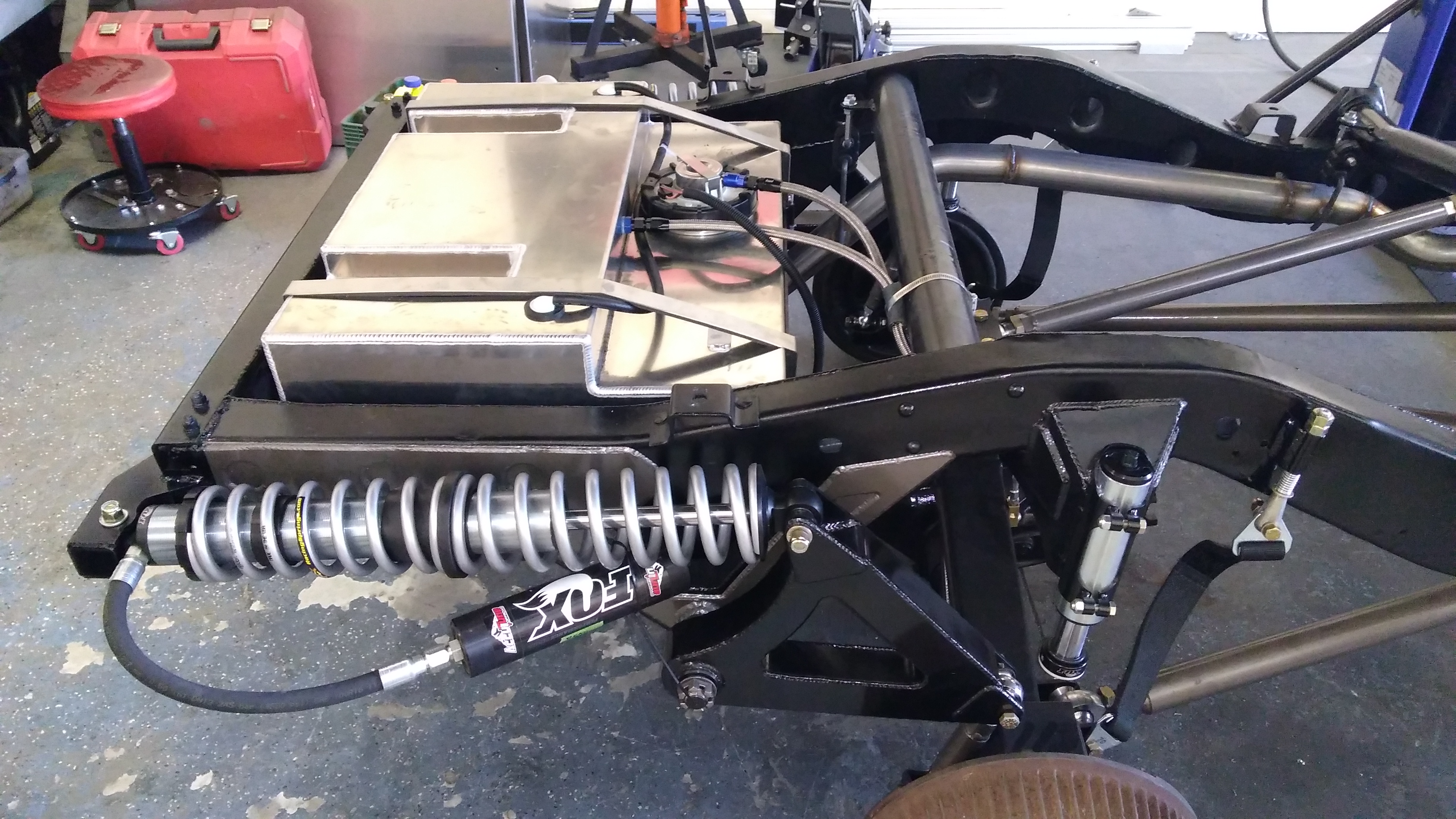 -Cantilever rear shock design for more travel and to keep the shocks out of the interior. See pics.