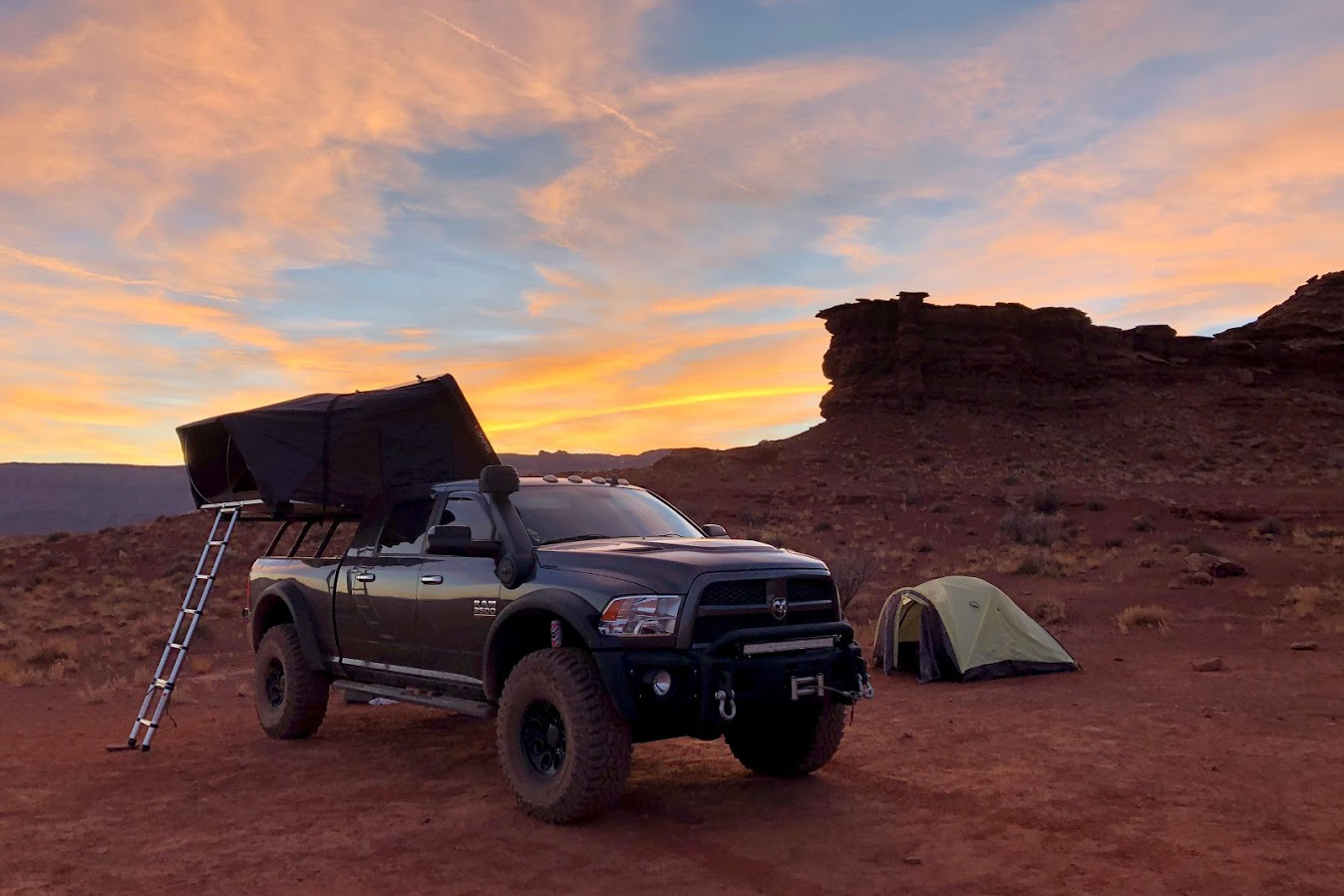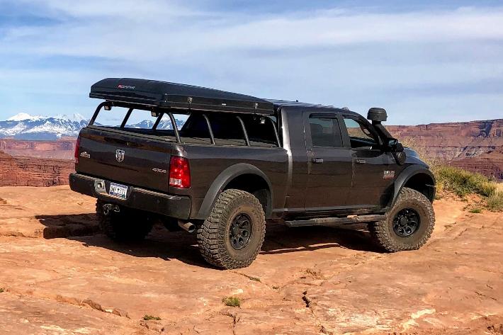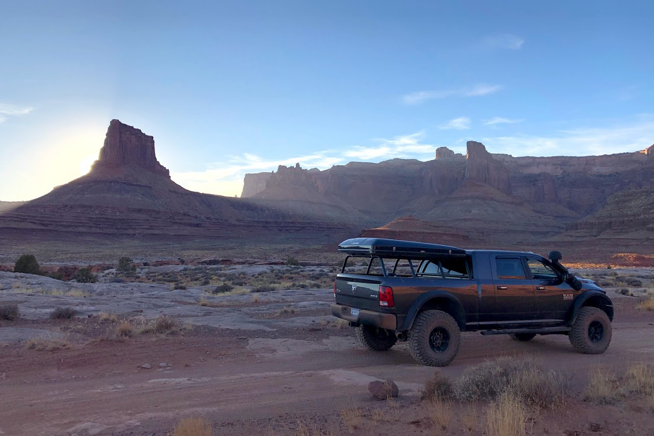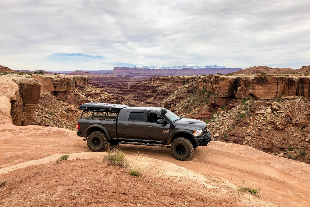 “Between my Dad and me, I think we’ve been to almost 60 countries. However, we never really had the chance to explore Utah together. I thought a great trip to do would be the White Rim Trail in Canyonlands National Park. We went in April 2019 and enjoyed spectacular weather for the first few days. The trail and scenery were absolutely breathtaking, but by night two on the trail, we got caught in a horrendous windstorm while camping at White Crack. The next day, temperatures slowly dropped into the low 30s and high 20s, and the rain eventually turned to snow. We managed to drive from White Crack clockwise, heading toward Labyrinth in a slow rain that turned into a blizzard. By the time we got to Hardscrabble, the weather had gotten really bad (I would call the trail almost impassable at that point). We continued on without another vehicle anywhere to be seen. When we got to the Mineral Bottom Road switchbacks, the road was a snowy, muddy mess, but we decided to go up anyway since it was our only way out. On the way up we ran into some park rangers who got stuck going down on their way to close the road. We all got out of there, but had I been in almost any other vehicle, we would have had to drive all the way back around the White Rim to exit. I can 100 percent attest to the fact that after torrential rain/snow, going through Hardscrabble and up Mineral Bottom Road is not advised and is effectively impassable. That is, of course, unless you’re in a locked Ram on 40-inch MTs. We skipped our last night camping at Labyrinth due to the horrible weather and enjoyed some cold beer and great food back in Moab.”