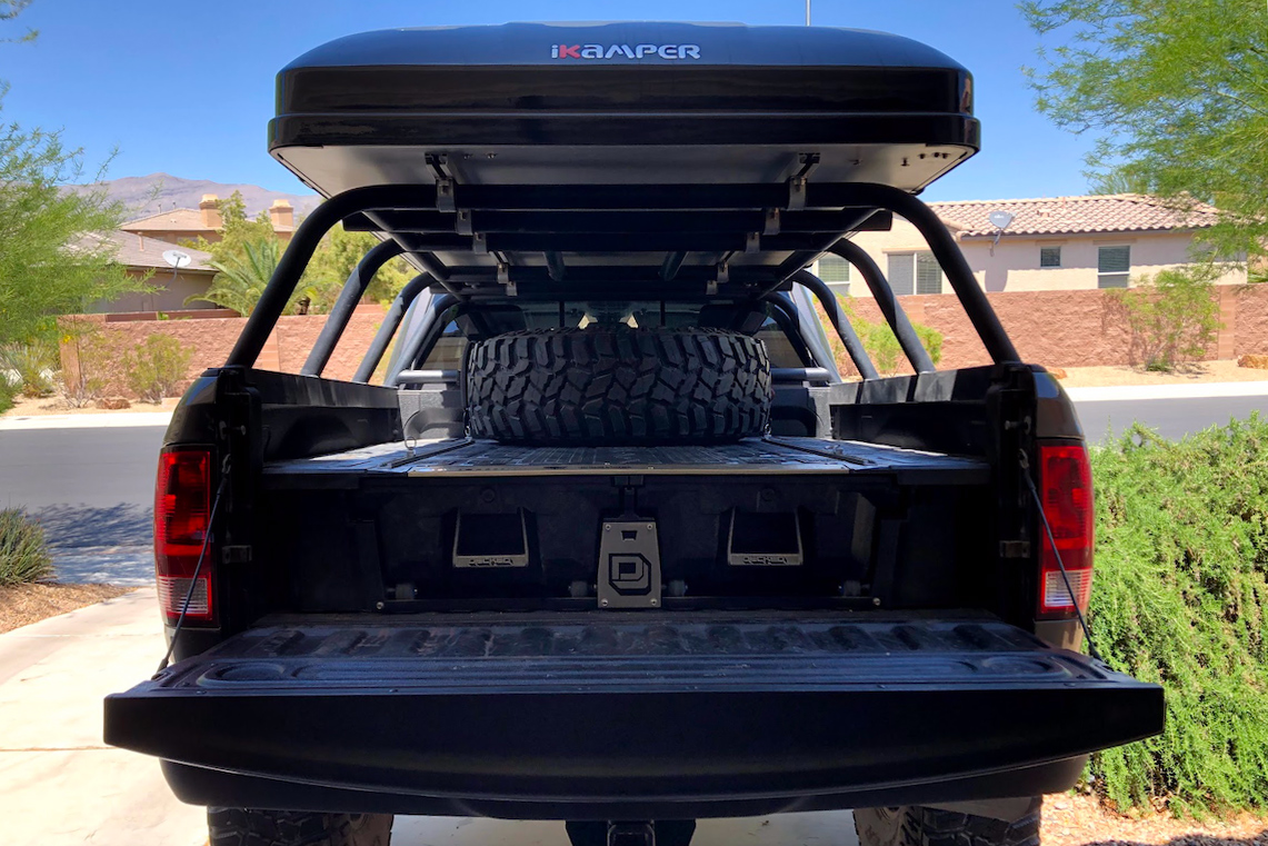 Quinn purchased this truck for weekend overlanding trips and to use as a hauler for his other gear. He wanted a truck that could go “almost anywhere it would fit,” with room for his family and all of the extra equipment needed to stay comfortable on the trail. He purchased the Ram 3500 from a dealer who had acquired it from an AEV dealer (who installed most of the AEV components). After purchasing it, Quinn added gears, a locker, winch, PSC steering, rack, tent, and Decked setup to complete this incredible build.