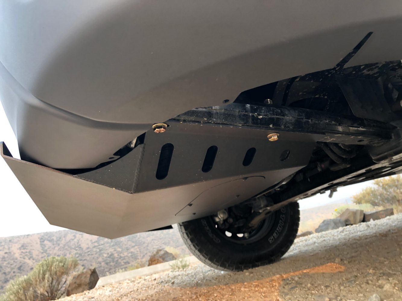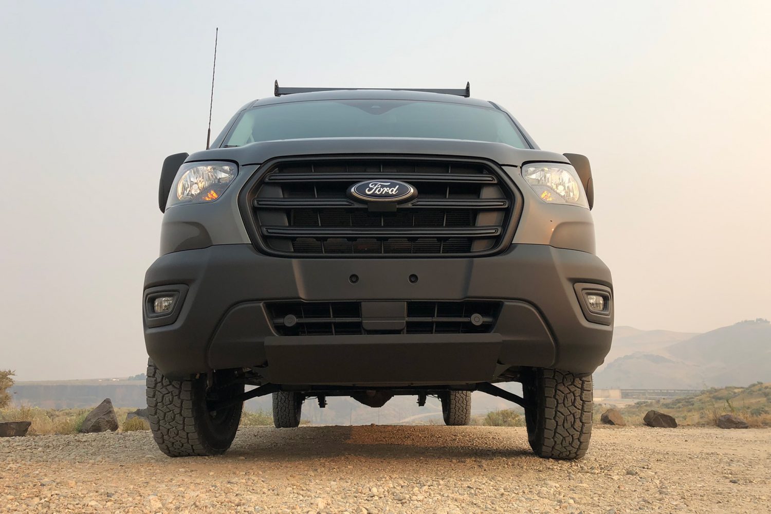 The AWD configuration as delivered from Ford does not raise the vehicle height over the RWD model. So, we used a new Van Compass Topo 2.0 lift kit with blue springs to bring it up to snuff. The two-inch suspension lift was backed up with a set of Toyo Open Country AT3’s in 245/75/16, bringing the total lift to 3″. More Van Compass goodies include tuned Fox rear shocks, a front aluminum skid plate, and more ground clearance with the help of their High Ground Clearance Shock brackets.