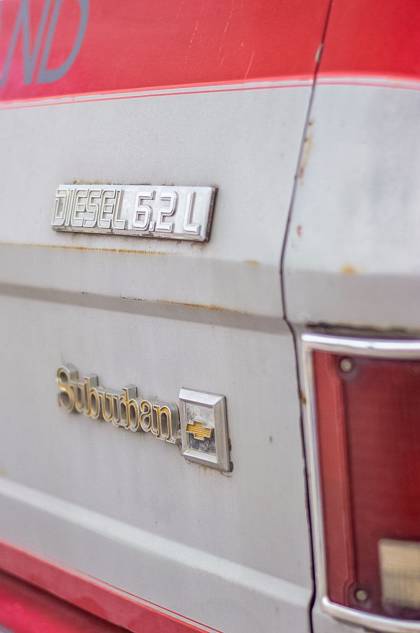 First things first, this truck is not in “show room” condition. The seats have been swapped, the paint is clearly fading, and in general, it is showing the amount of patina you’d expect for a 1983 suburban, but the owner says it still runs smoothly with 124,500 miles on the clock.