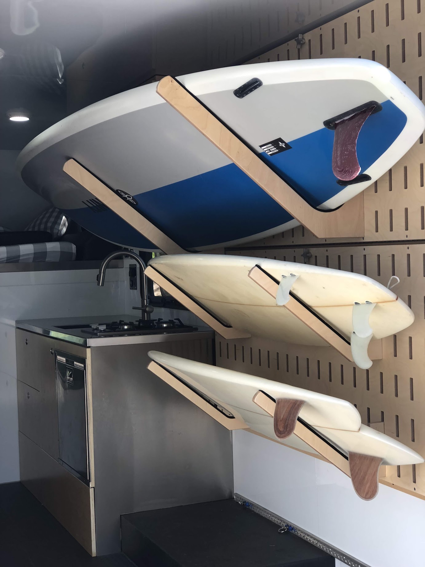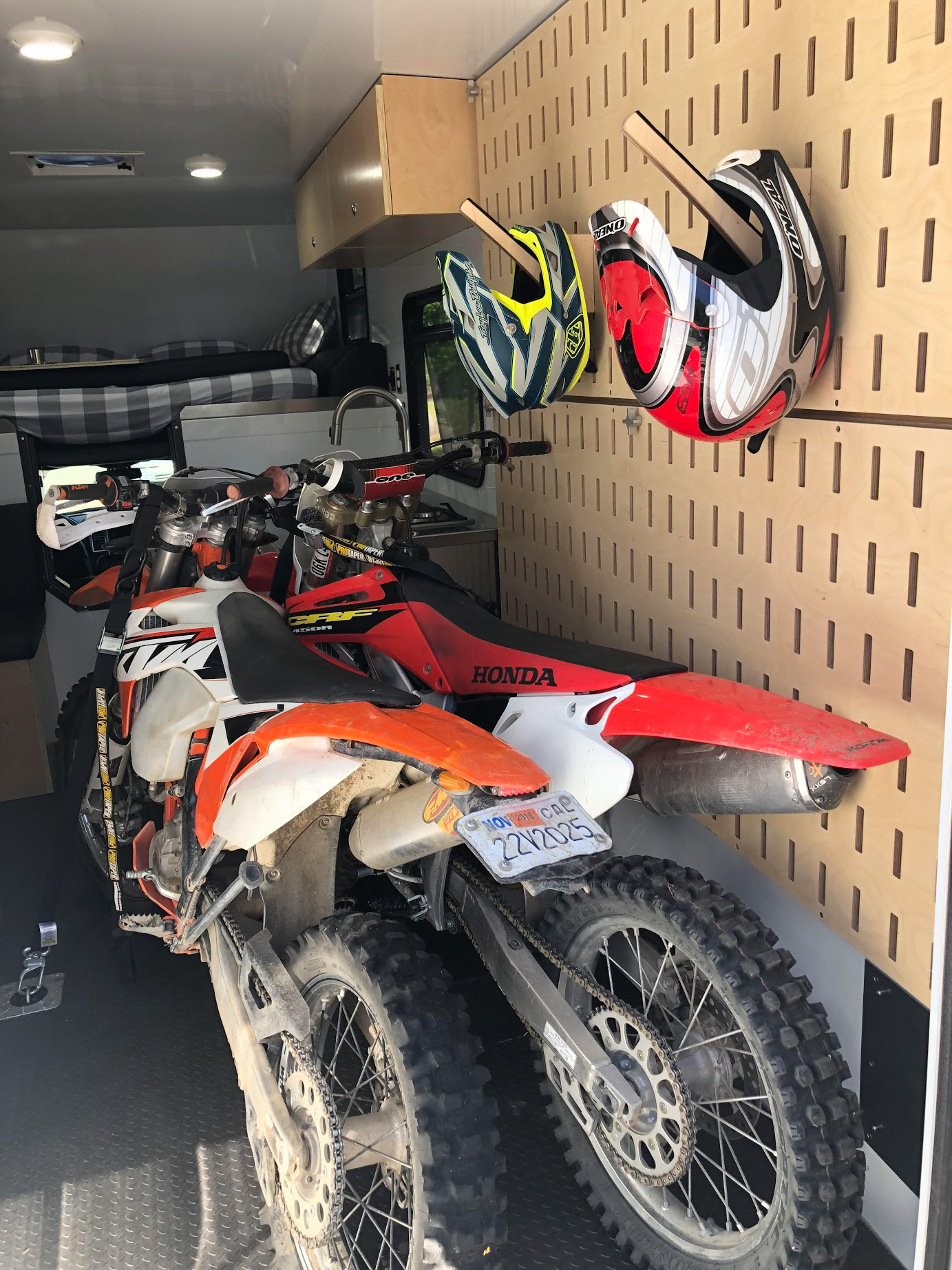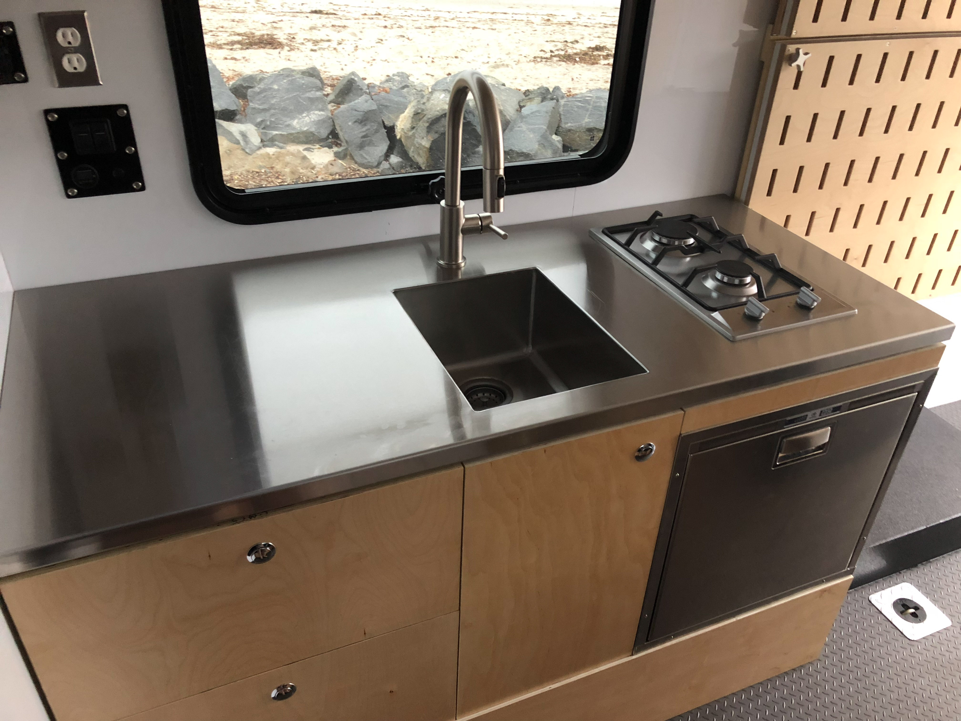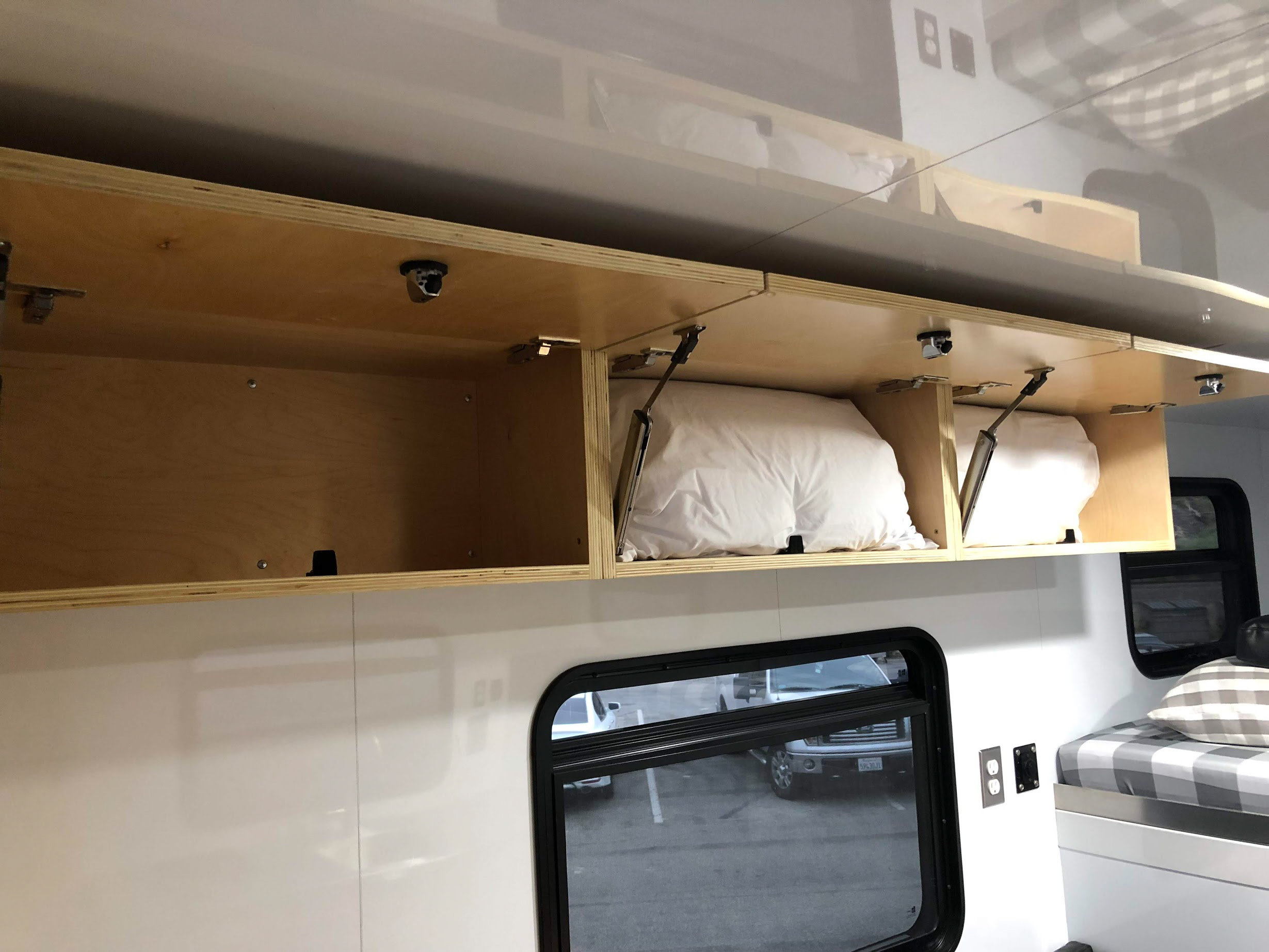 -Macerator in the drain, so you don’t have to worry about what you’re showering off yourself after riding bikes or a day at the beach - Tons of custom cabinetry for interior storage