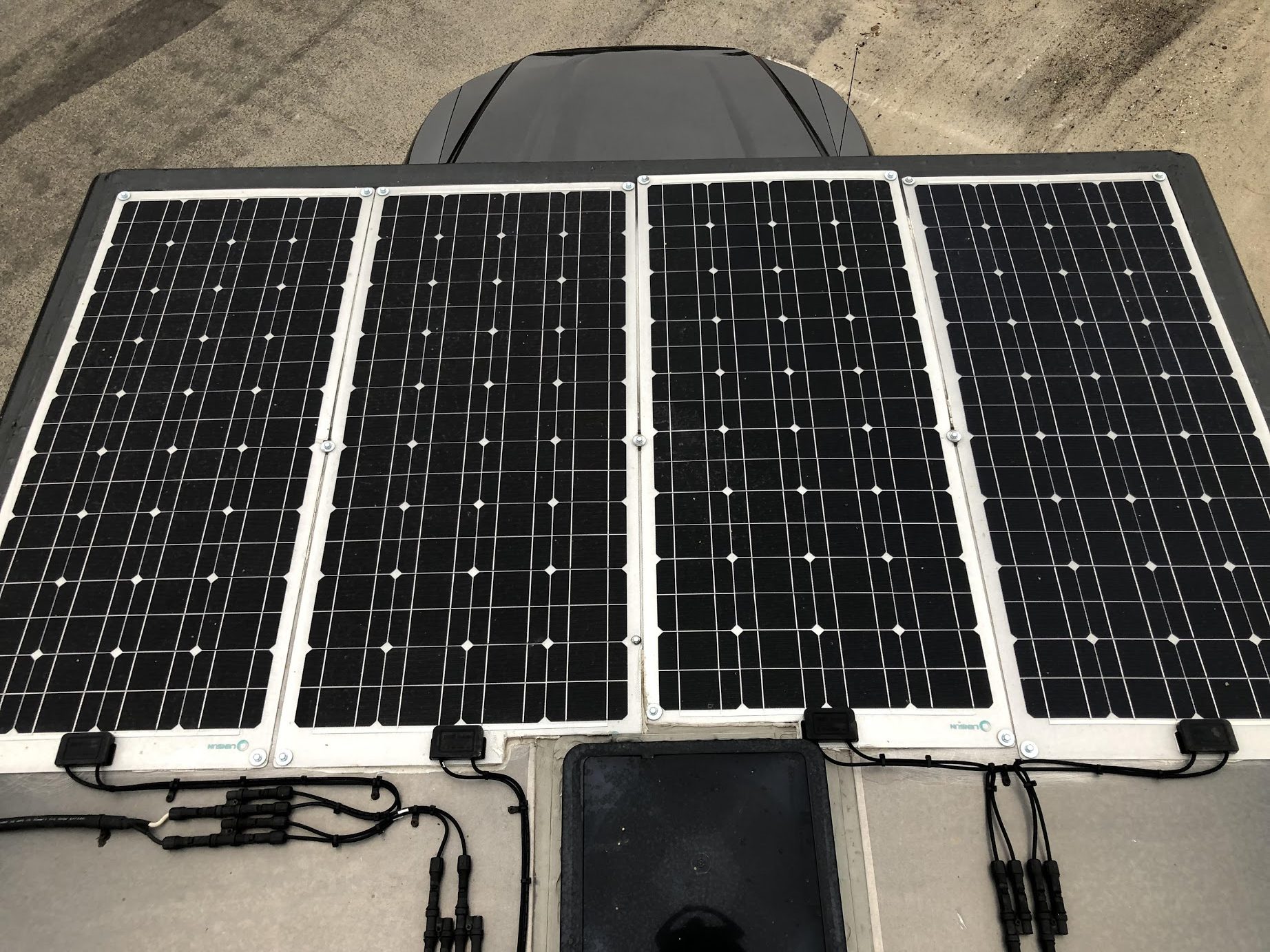 -Has wiring to add a permanent generator if desired - 400 watts of Lensun Solar on the roof, marine grade, can be walked on