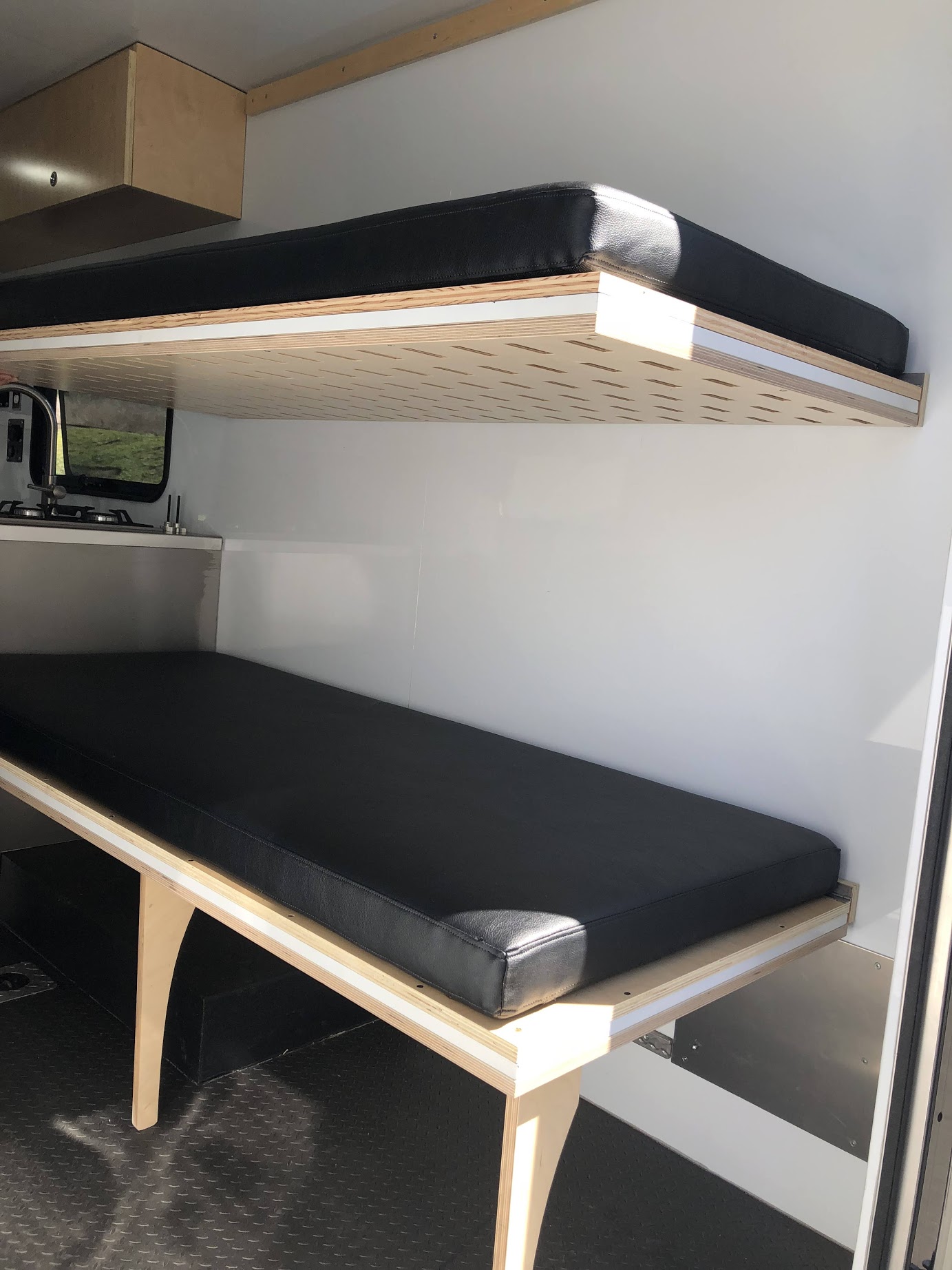 -Fold-down twin bunk beds along gear wall - 50-gallon freshwater tank