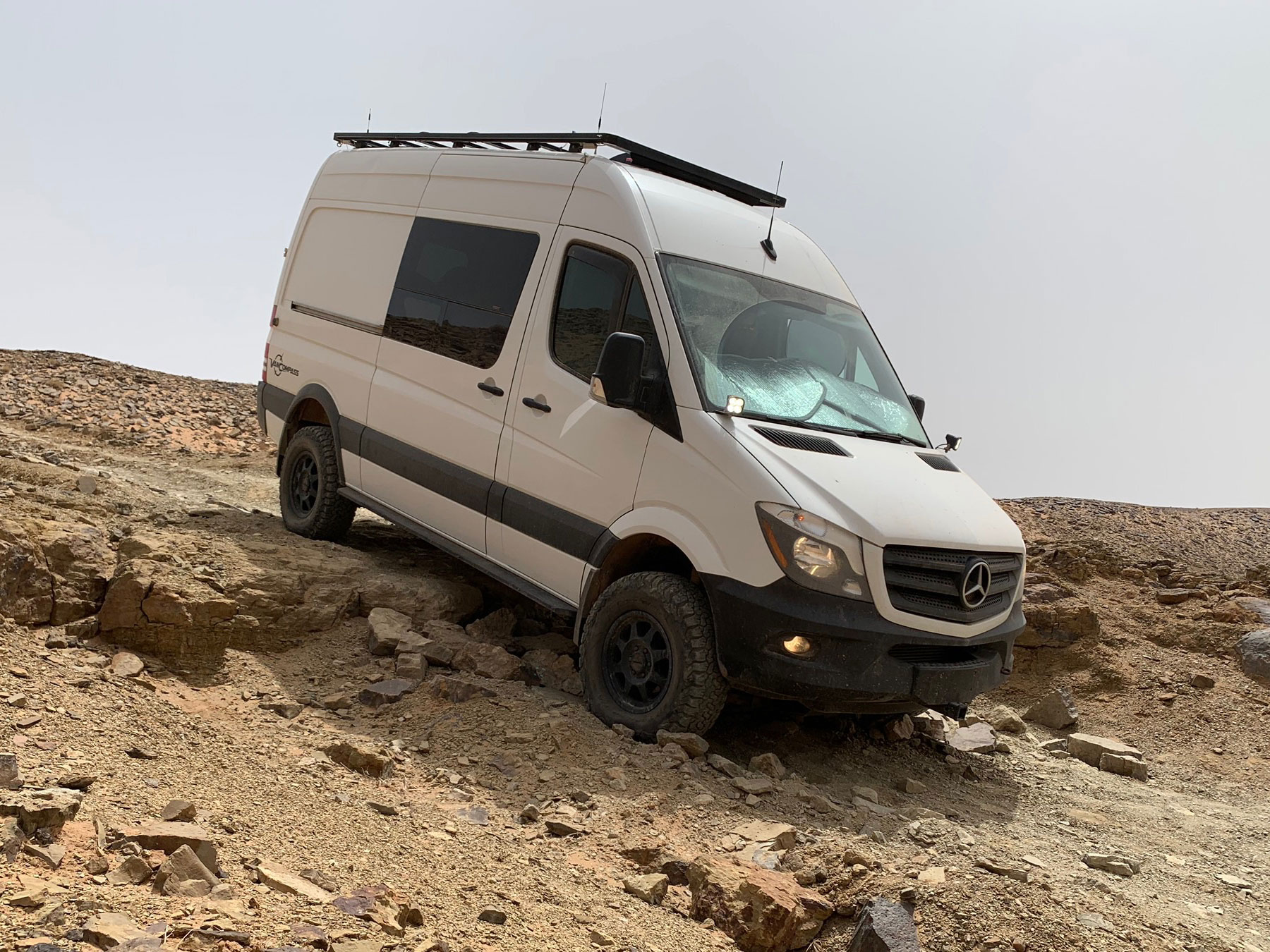 The off-road performance modifications allowed the Sprinter to go almost everywhere we overlanded with our 80-Series Land Cruiser. Some may think this is an exaggeration; it is not. The Mercedes 4X4 option augmented with Van Compass’s stage-5 Striker suspension and 34-inch tires means it has similar ground clearance to a couple-inch lifted Land Cruiser. This, coupled with all of the Van Compass armor (engine, transmission, transfer case, rear differential, sliders, and fuel tank), allows this vehicle to go almost anywhere.