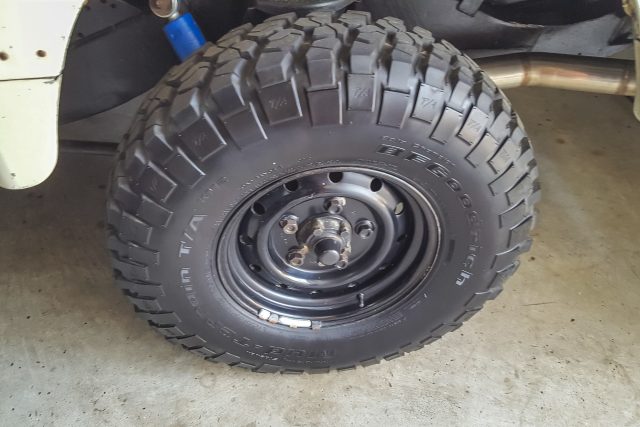Steel wolf wheels w/brand-new BFG KM2′s. Full-size matching spare