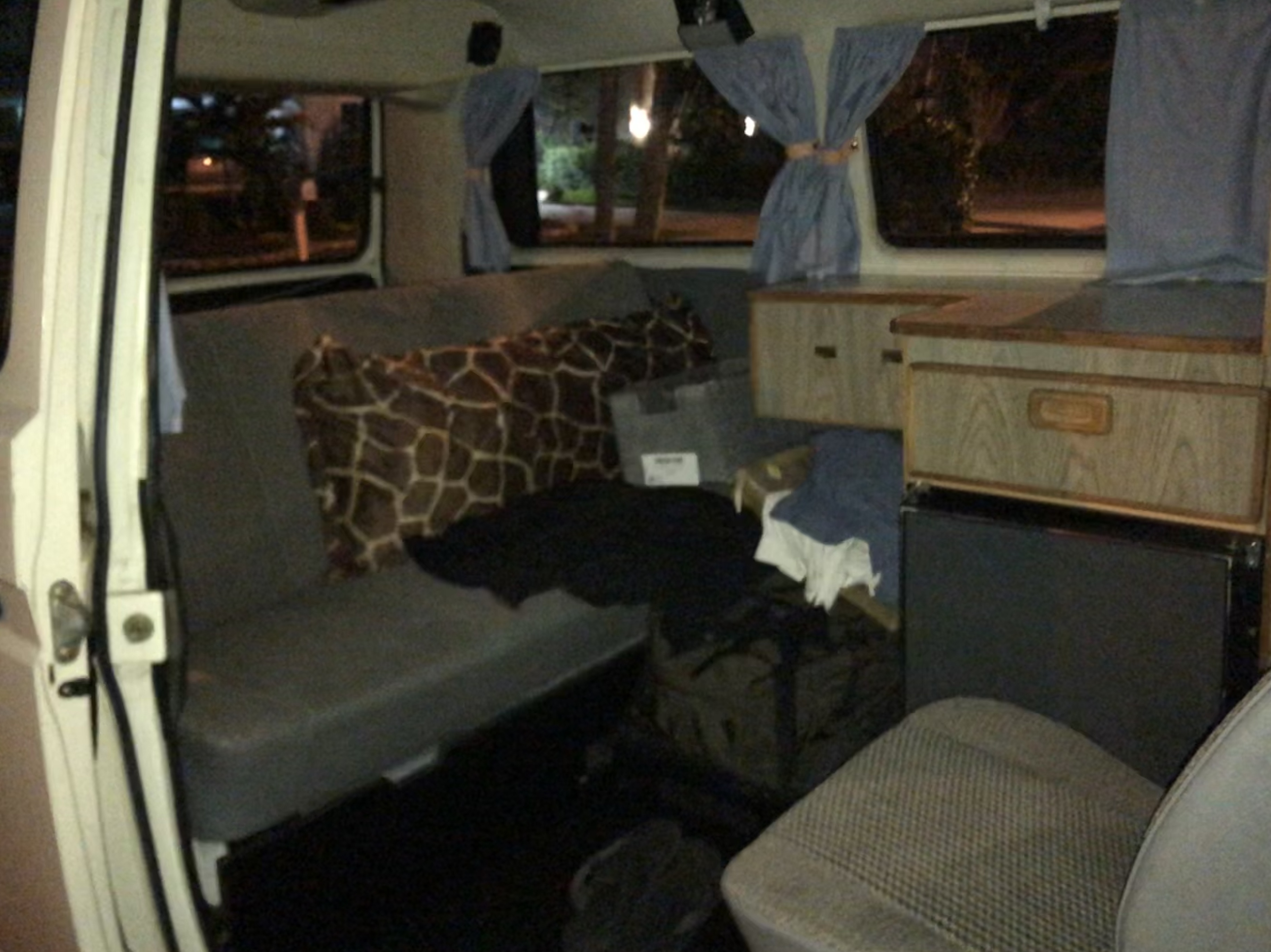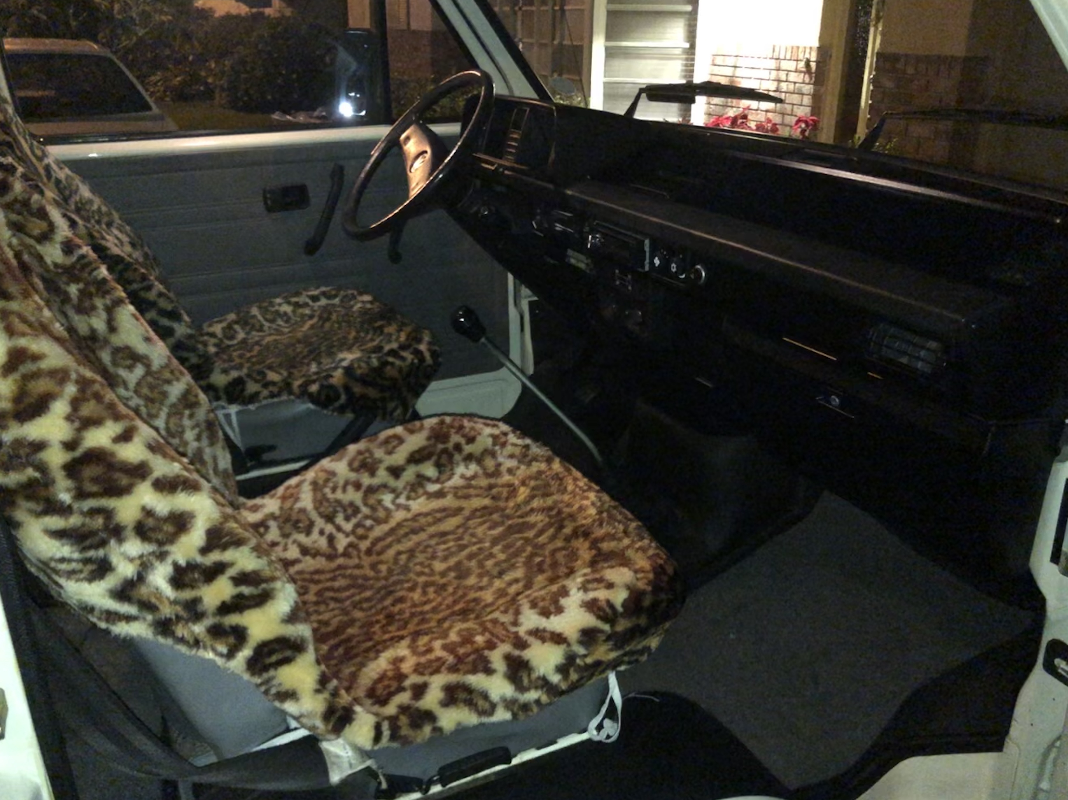 Recent maintenance includes new tires, front brake pads, a tune-up, oil change, fuel pump and filter, and LED headlights, but it’s still not 100 percent perfect due to two small discrepancies. For starters, the air conditioning belt has been detached for a while, and the seller makes no guarantee that it works, though they state it did when the belt was removed. The tent canvas is fortunately in good shape, but the screens apparently need to be replaced for some undisclosed reason. Outside of that though, there doesn’t appear to be any issues, with the possible exception of the seat covers seen above, which trouble us deeply.