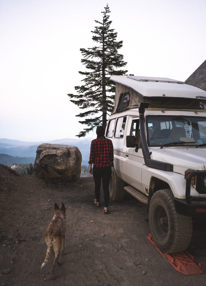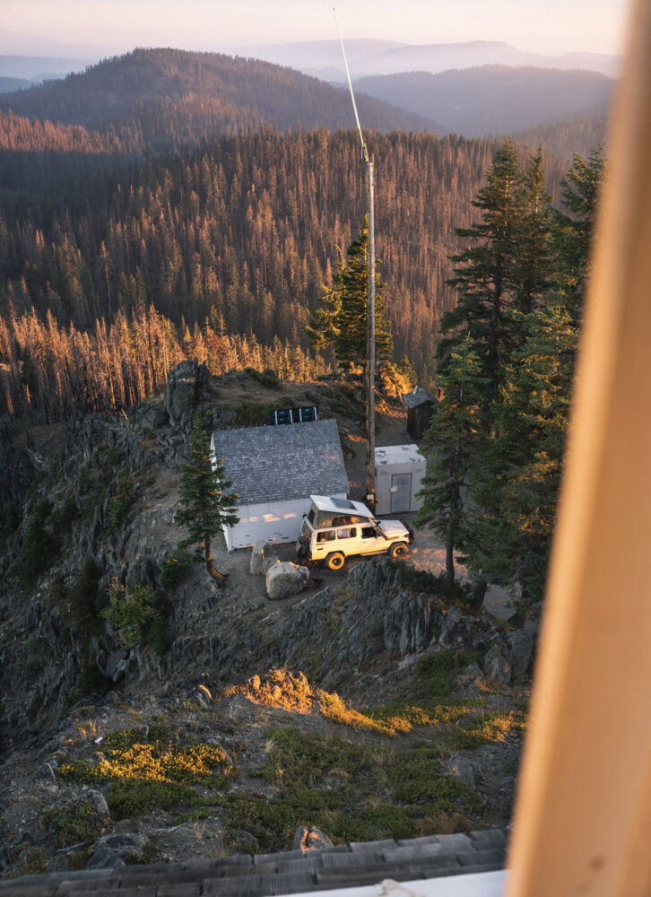 Recently, we started bringing local guide books on our trips. Browsing their pages has led us to some very unexpected places, and this trip was no different. Olivia found a section in the book that mentioned a unique fire lookout just west of us. The lookout was decommissioned by the Forest Service years ago when the access road failed to meet regulations. The tower, however, remained open to camping on a first-come-first-served basis with the stipulation that high clearance 4x4s were the recommended method of access. Knowing our Land Cruiser was up to the challenge, we headed toward the lookout with hopes to camp at the summit.
