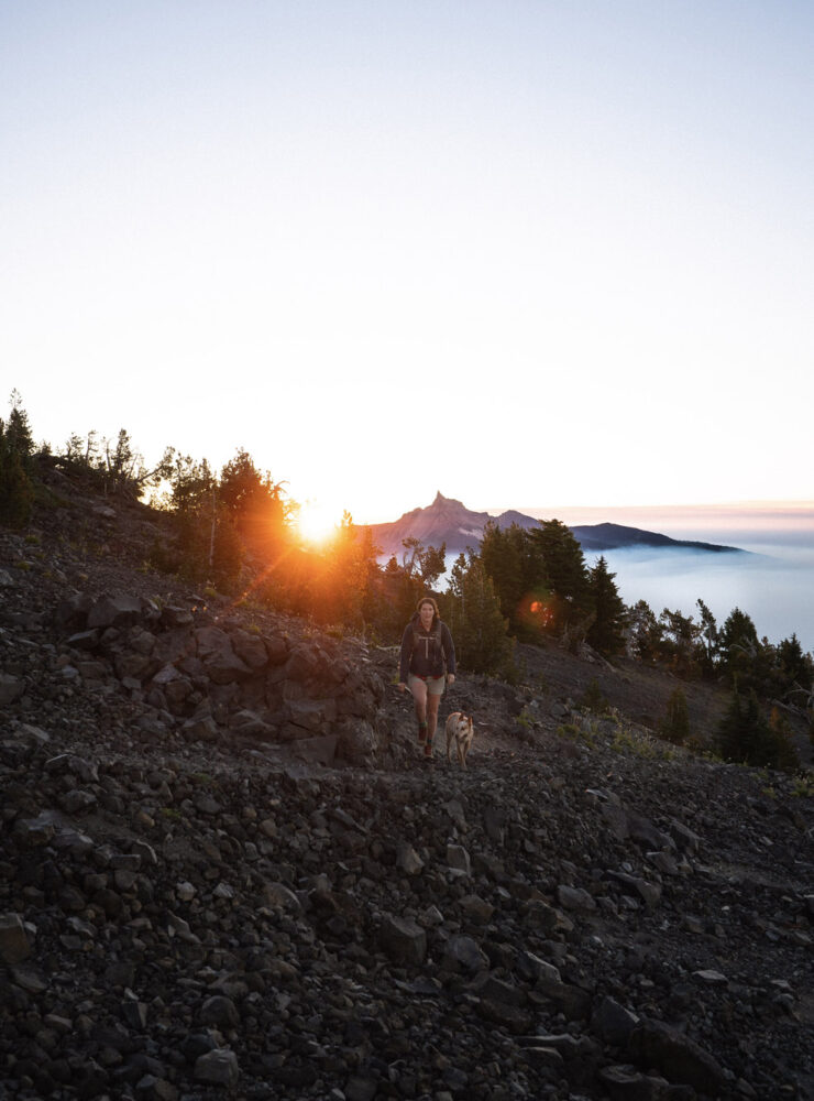 Our sunrise hike to Mount Bailey’s summit was nothing short of spectacular. A 4×4 trail to a second trailhead cut a few miles off the roundtrip hike and allowed us to avoid other hikers during golden hour. As the sun began to illuminate the surrounding mountain ranges, we could see dormant wildfire smoke sitting in the valley beneath us. The warming air and growing winds would eventually push the smoke toward us on the summit, but we were able to enjoy a few breakfast burritos with crystal-clear views.
