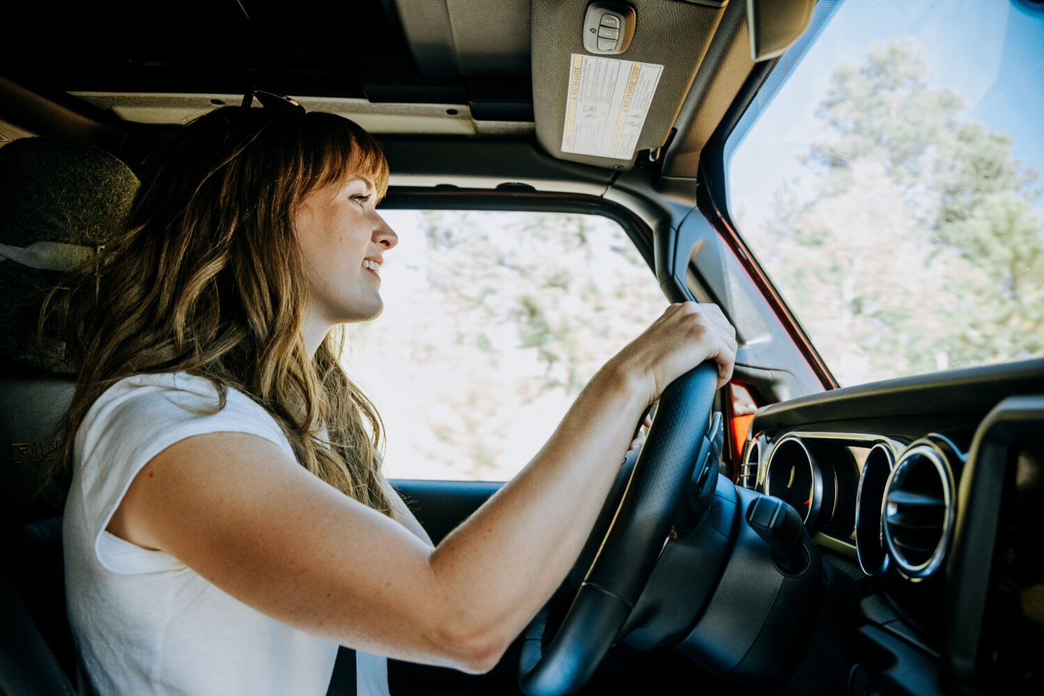 I’ll admit that the Jeep Wrangler 392’s appearance is, well, unassuming at best. It looks like every other JL, but it doesn’t feel that way when you’re driving it. I snuck a glimpse at it several times throughout the week in Colorado with various backdrops (does anyone else do that?) and was always surprised by how the look of the truck differs so massively from how it feels, how it drives, and, most of all, how it sounds (more about that later). I loved the thoughtful details, such as the Willys graphic on the gear shifter and in the right corner of the windshield.