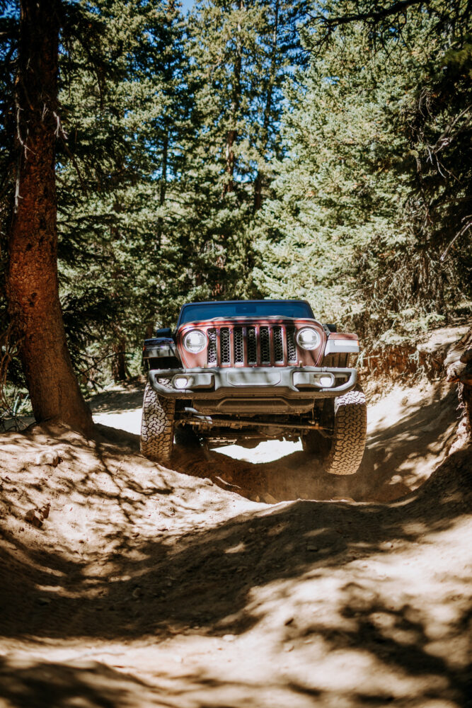 Eventually, our time on dirt came to an end. With a satisfying layer of dust hiding paint, our group transited toward Overland Expo Mountain West via the ski-hill dotted Loveland Pass. The Jeep’s soft top was surprisingly quiet, muffling much of the road noise that distracted me while driving a 2020 Gladiator in the past. Less road noise meant I could thoroughly enjoy the dual-mode exhaust feature. Is it frivolous to say that this was one of my favorite features of the Wrangler 392? Sometimes I couldn’t distinguish between the sub-blasting “Oxytocin” by Billie Eilish and the performance exhaust rumbling away. Another bonus: the performance exhaust feature can be turned off so you can respect your fellow campers by rolling through a site in stealth mode.