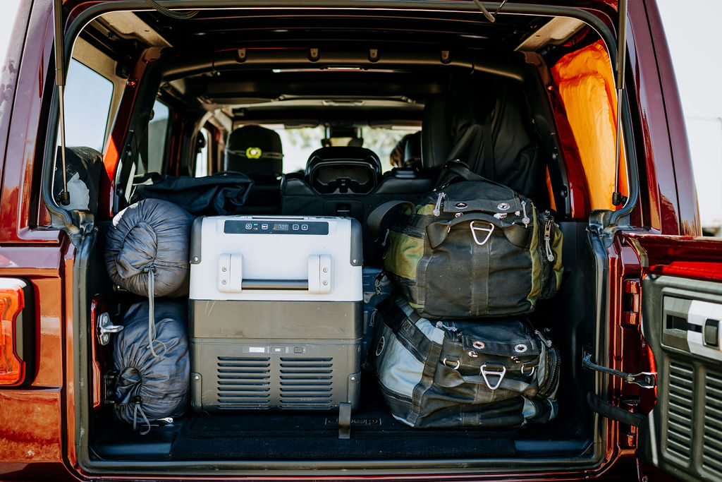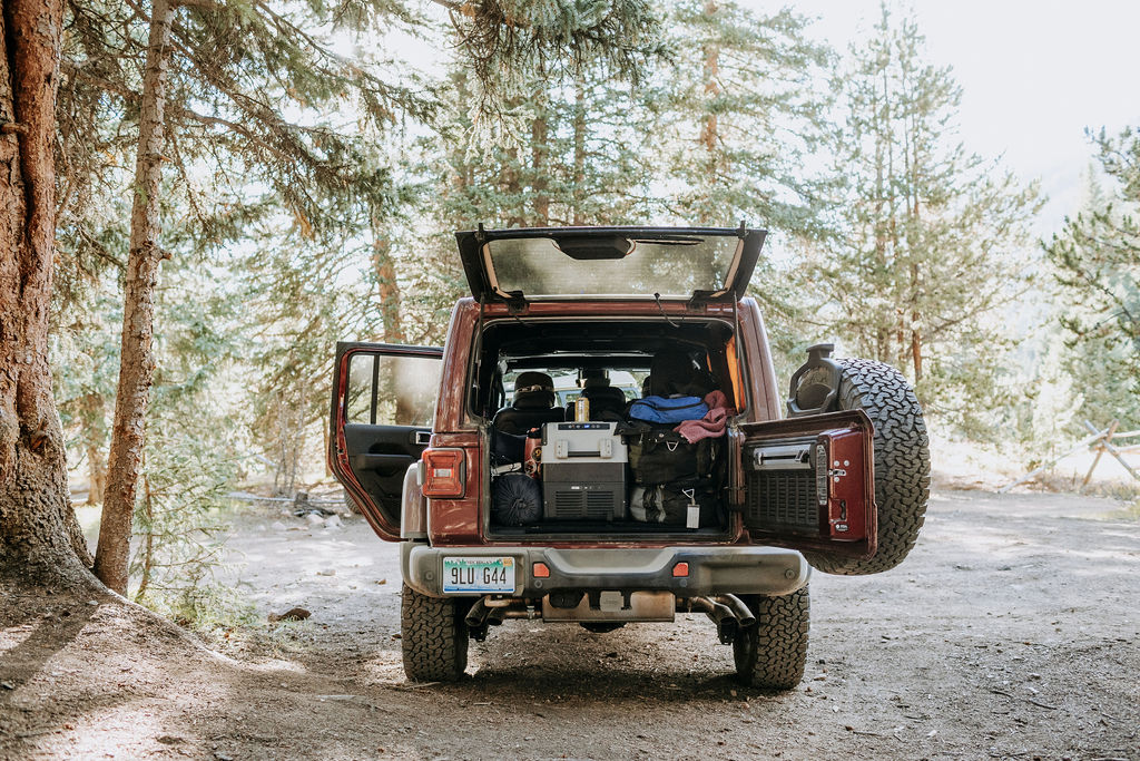 Dometic kindly lent us a CFX45 cooler, powered by a Dometic 40Ah portable lithium battery (PLB40) that we plugged into a 12-volt socket in the rear of the Jeep. While we enjoyed our simple setup initially, one piece of kit that we can never say no to is the fridge, and it proved to be essential during hot days atop high-elevation passes in Colorado. We’ve found that keeping hydrated is one of the best ways to prevent altitude sickness and headaches, so we stocked the fridge with cold drinks for the week. While we enjoyed sleeping in the back of the Jeep, the addition of the fridge meant we were relegated to our ground tent, which wasn’t bad either! The extra space meant we could easily access toiletries, clothes, and camera gear from the rear hatch of the truck.
