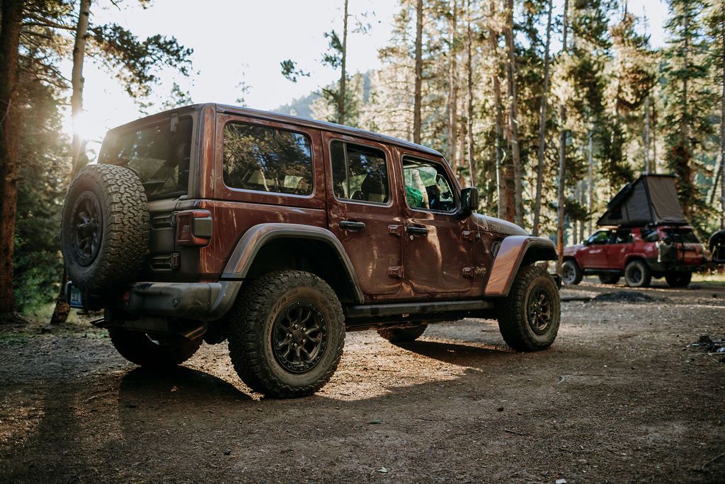 We always seem to find ourselves at the brink of dusk with nowhere to camp. Richard and I were parked at a Whole Foods Market in Castle Rock, Colorado, and while my husband scrolled through the iOverlander app, I crammed the last of a Chipotle burrito into my mouth. We hopped into the 8-speed automatic 2021 Jeep Wrangler 392 (official color: Snazzberry), heading for the hills and hoping the sky wouldn’t be pitch black by the time we reached camp. One of the great things about Colorado we would learn over the coming days was that fantastic camping was never too far away.