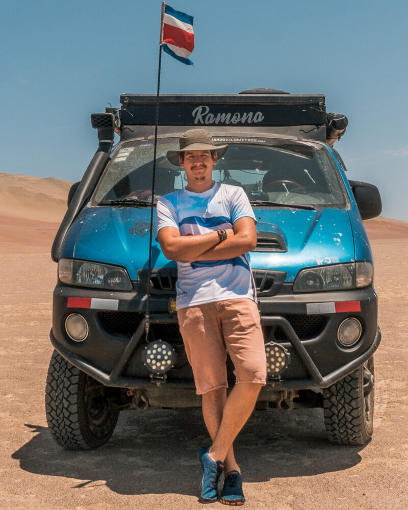 In January 2019, Emmanuel and three friends left Costa Rica in his 1999 Hyundai Starex van, “Ramona,” bound for South America. Along the way, Emmanuel funded his travels by supplying hotels, restaurants, and local businesses with photographs for marketing purposes. He visited local markets, traveled slowly, and learned to live every moment like it was the last—including four months spent living outside the Costa Rican embassy in La Paz, Bolivia, due to the Covid-19 pandemic. Like Ernesto and Taisa, Emmanuel now shares his own experiences about life on the road, inspiring others along the way.