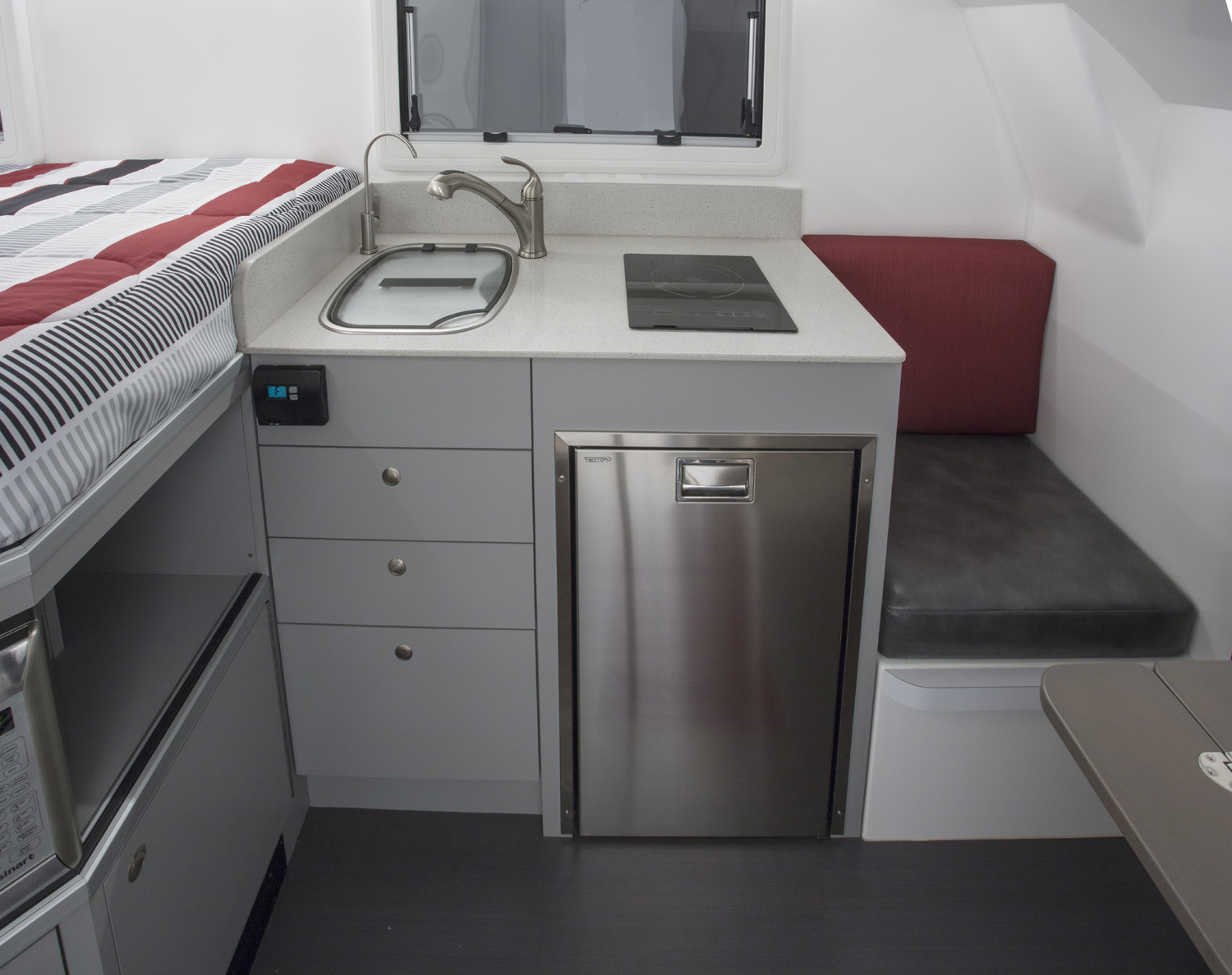 The subframe of each product is riveted together to maximize the strength to weight ratio, and the cabinets are assembled with ultra-lightweight marine-grade woods before being sealed with laminate surfaces for longevity. Because no two styles are alike, a range of wood grain and contemporary laminate surfaces will be available to match your vehicle’s interior to your personal style.