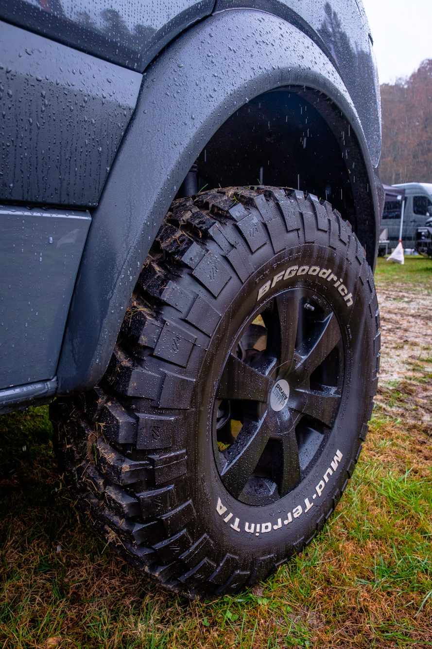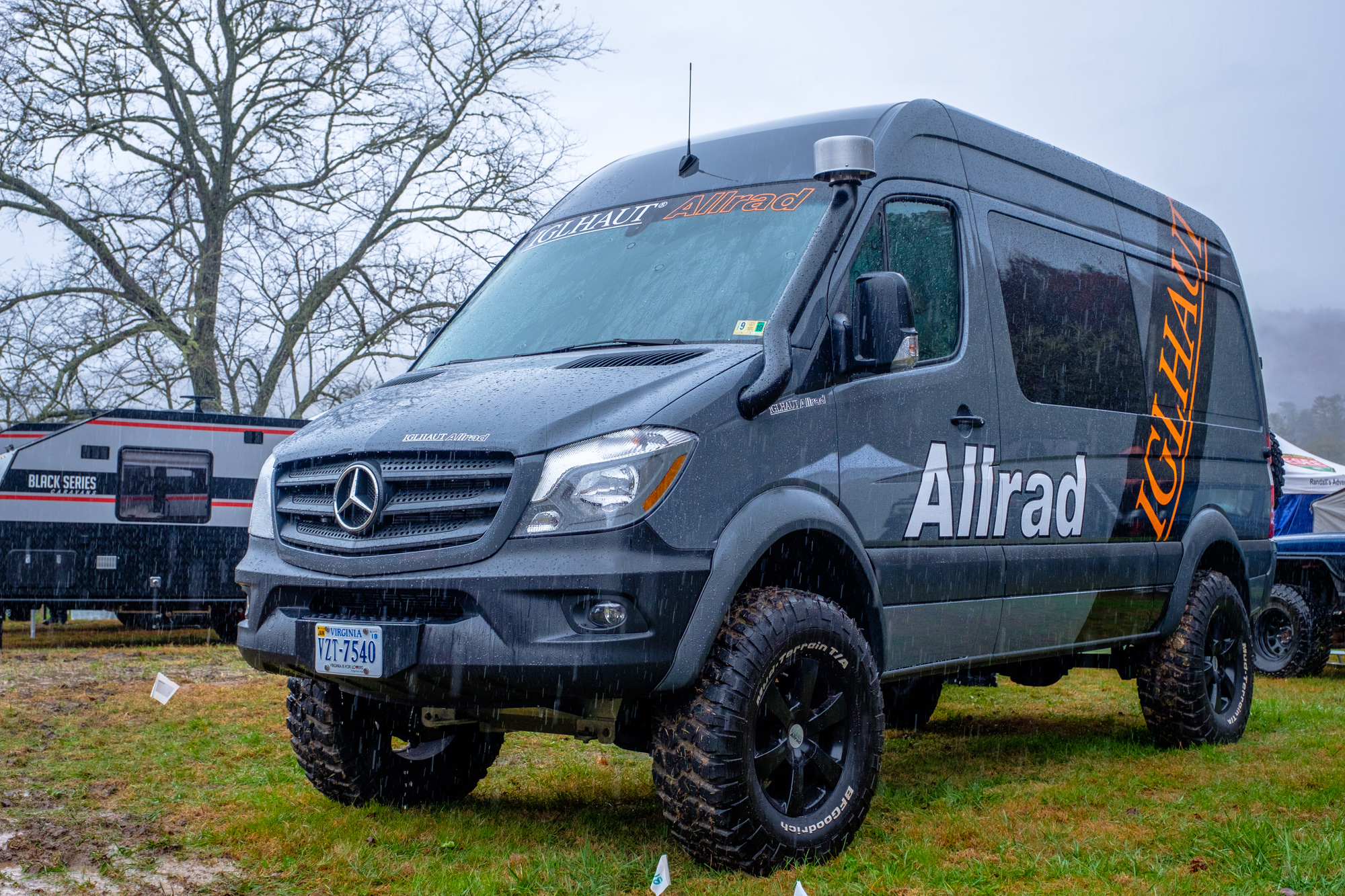 First, you purchase a 2WD van here in the states and book an appointment with IGLHAUT in Germany. Once the details have all been confirmed they ship the van over to their facility where it undergoes a conversion to a full-time, four-wheel drive system with a 50:50 power split. This uses more robust components than those available on US model Sprinters, which is why you start with a 2WD. They then re-gear the vans and install three differential locks. When the new suspension is in to match, they then add the 37-inch tires you see here.
