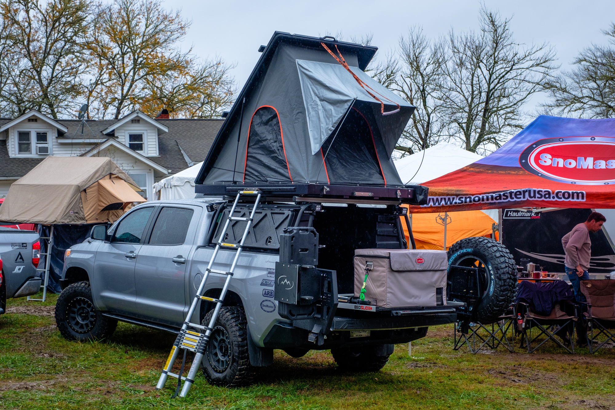 This Prospector XL was without a doubt one of our favorite trucks at the show, and how could it not be? Built by Main Line Overland out of Pennsylvania, this RAM is one of just 10 Prospector XL Tray Beds to ever be produced by American Expedition Vehicles (AEV). It features 41-inch tires, high-mark fender flares, AEV’s premium front bumper and snorkel, Katla wheels, and, of course, the aluminum tray in the back. These features alone make it rare and envy worthy, but to take it that extra mile Main Line paired it to a Woolrich edition Four-Wheel Camper flatbed model. Can anyone say dream truck?