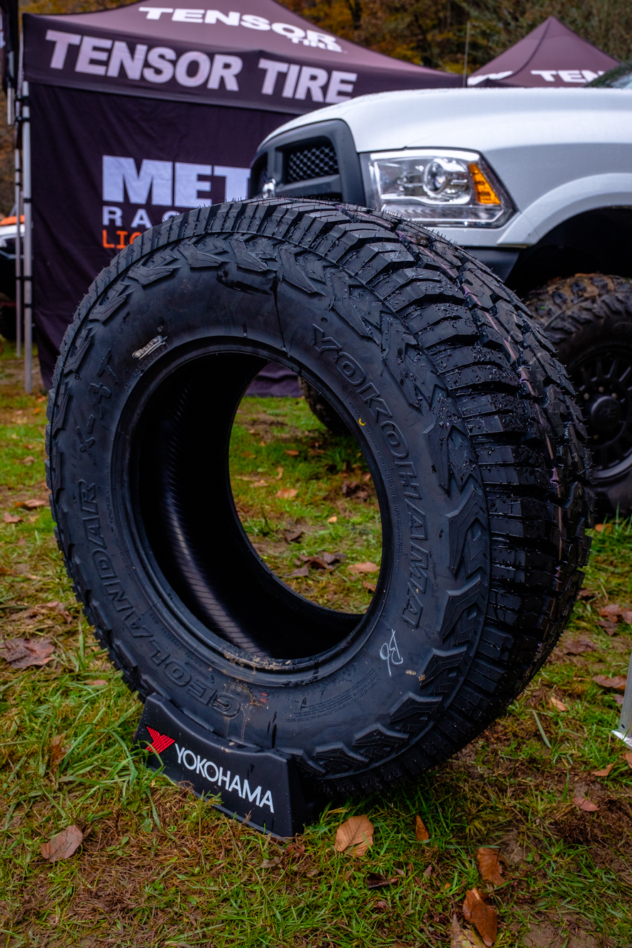 Yokohama has been making a splash in the overland space lately, and they’re about to make a whole lot bigger one with their new X-AT tire. This new release bridges the gap between their Geolander A/T and M/T platforms, giving consumers the aggressive sidewall patterns and off-road performance they love, without sacrificing the daily ride quality and noise level of an A/T. It even has different sidewall appearances depending on which way you run the tire, allowing customers to cater the look to their tastes. You can see both by looking at the top right and bottom left photos below.