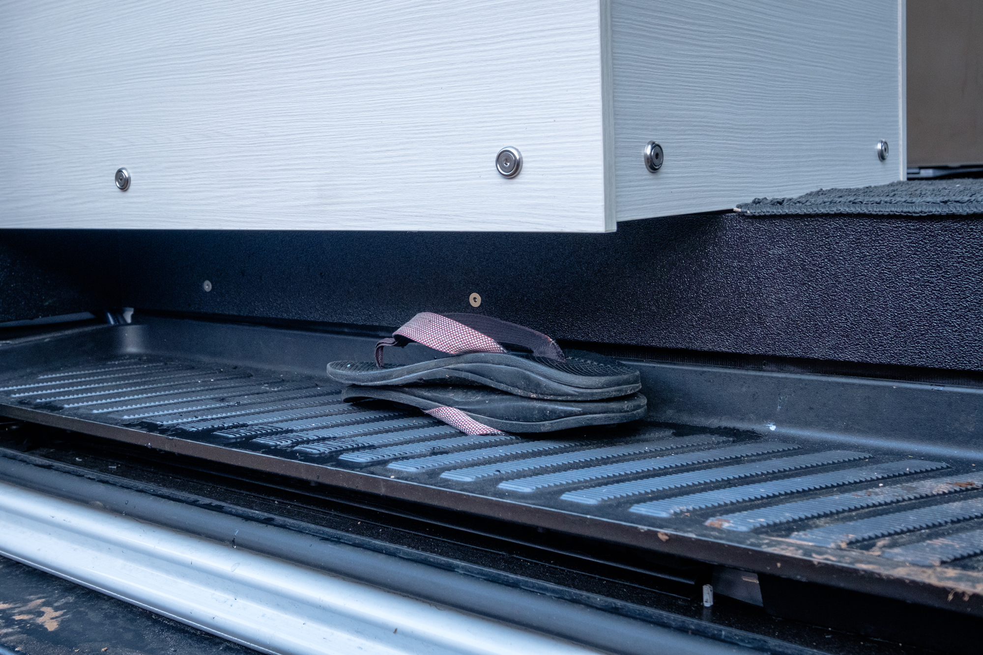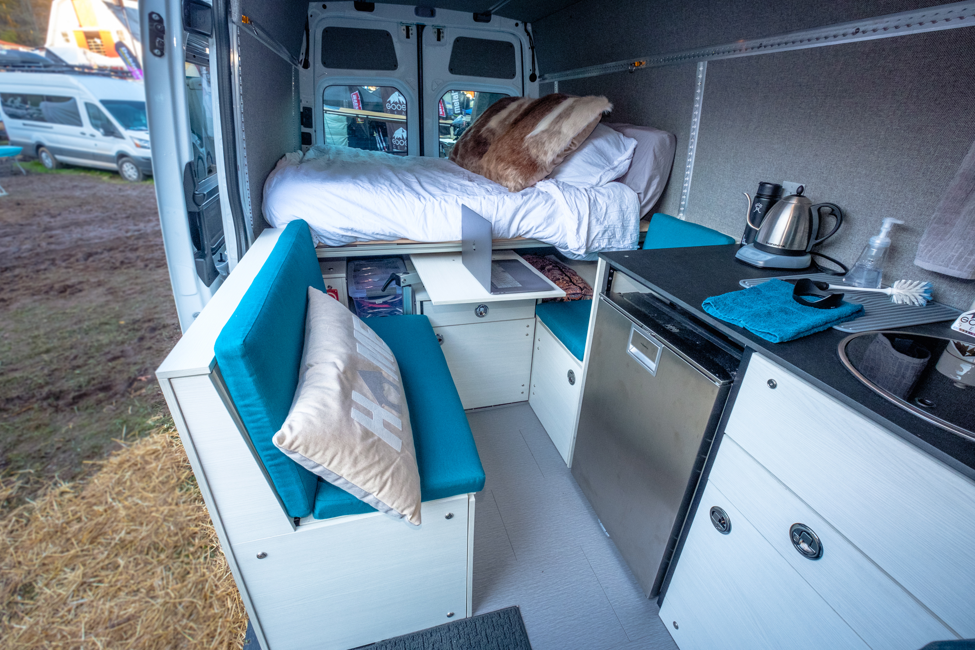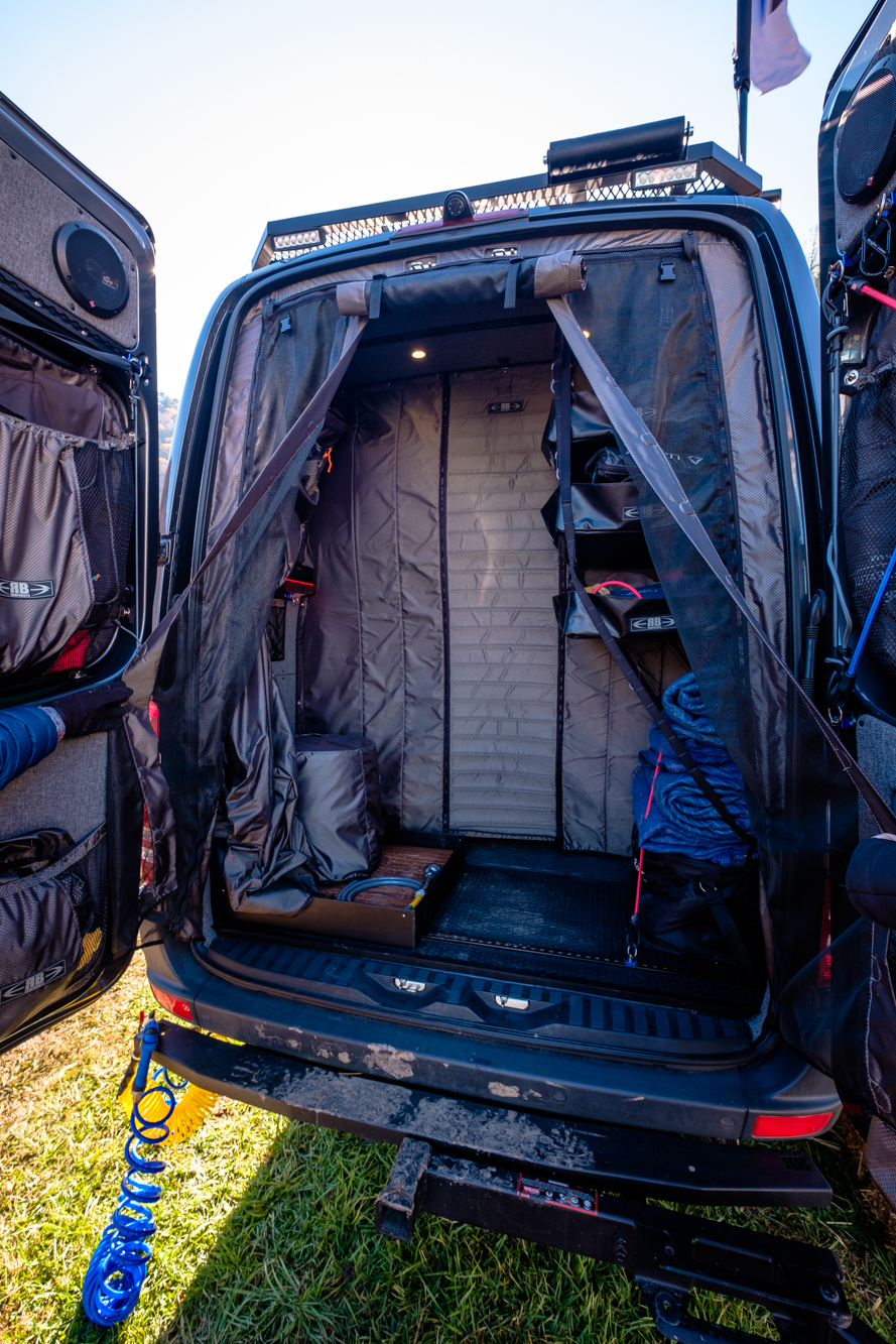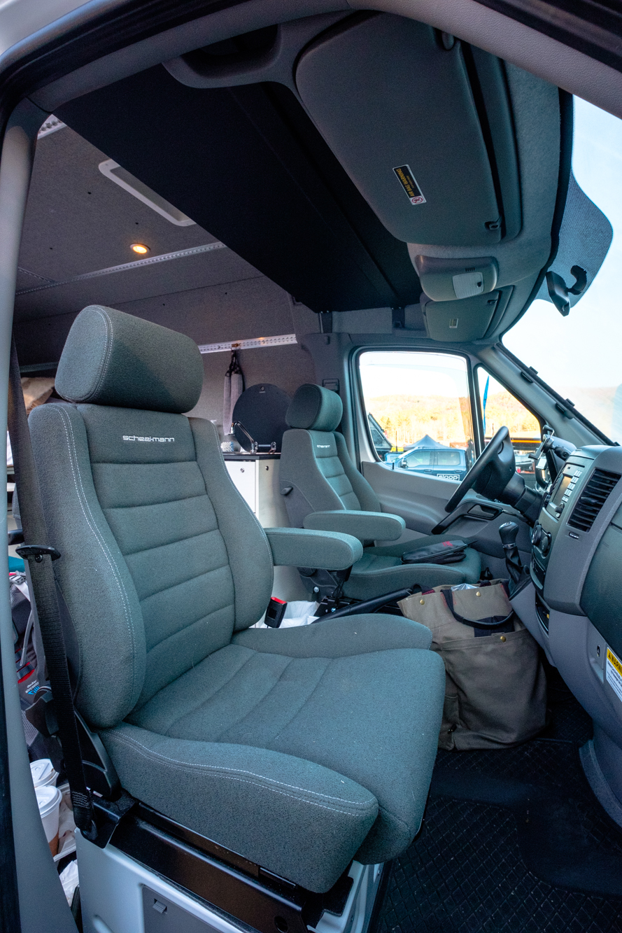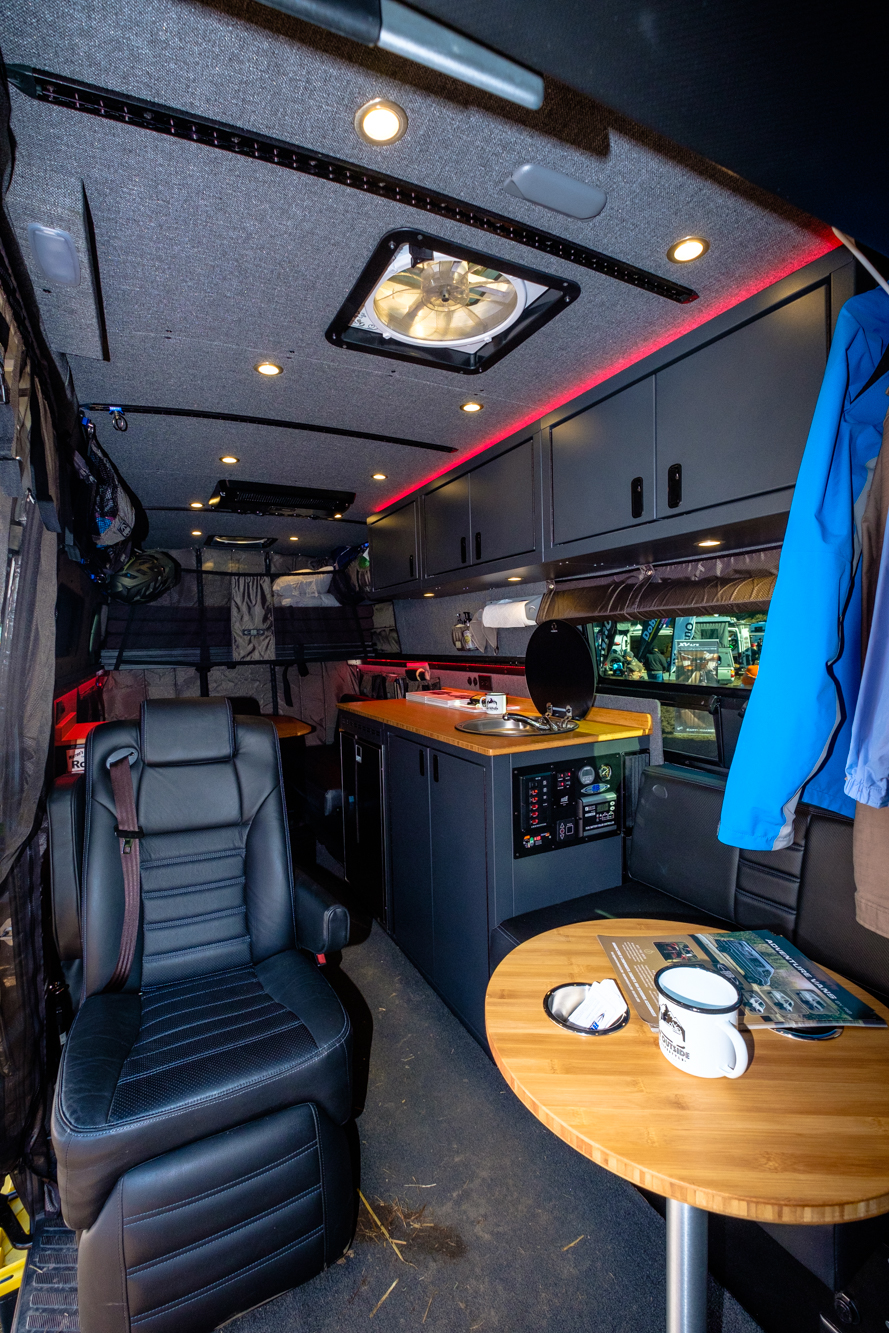 Although we’ve only had the chance to quickly poke around the interior of this Sprinter, I was impressed by how well everything worked and the little details incorporated into the build. Room for shoes on the doorsill for example, and dead space being utilized for wiring or storage. Everything has been planned out, and the result is a space that feels much bigger than it is.