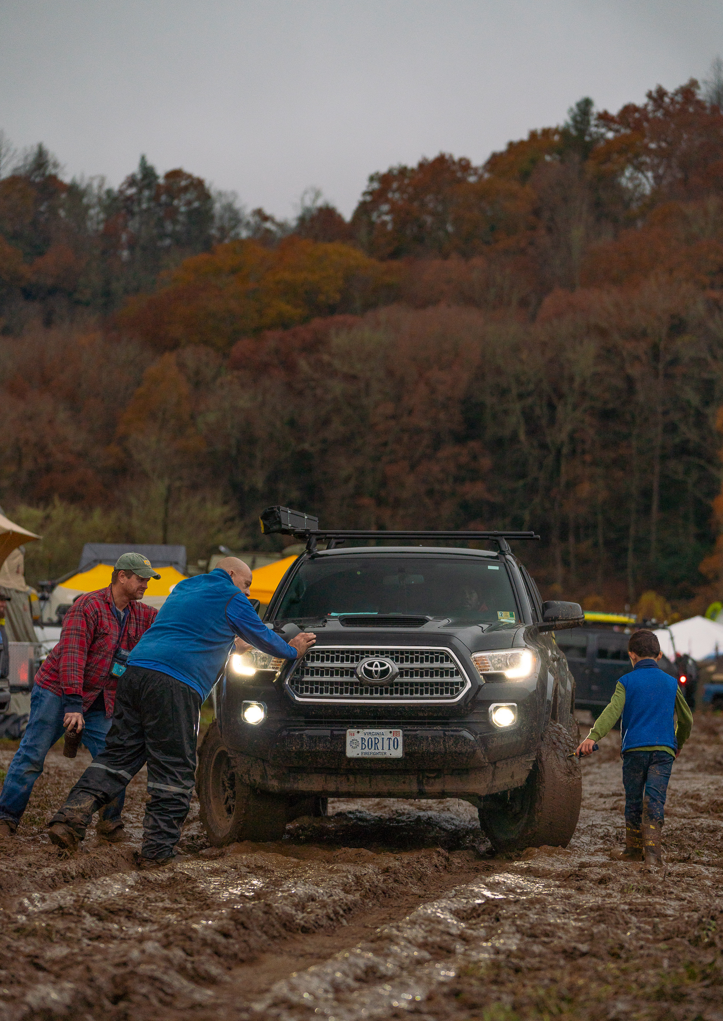 Expo East would not be complete without a dash of mud and the ensuing carnage that has historically defined this unique event. After eight solid hours of rain on the first day, the valley where the campground was held began its descent into Dante’s 10th level of hell; the one reserved for 2WD sedans and those who opted for canvas shoes. With the creek running at full flow and the campground avenues worsening with every spin, each recovery brought out the best in our little community. Traction boards abounded and we were shown once again, we are in this together.