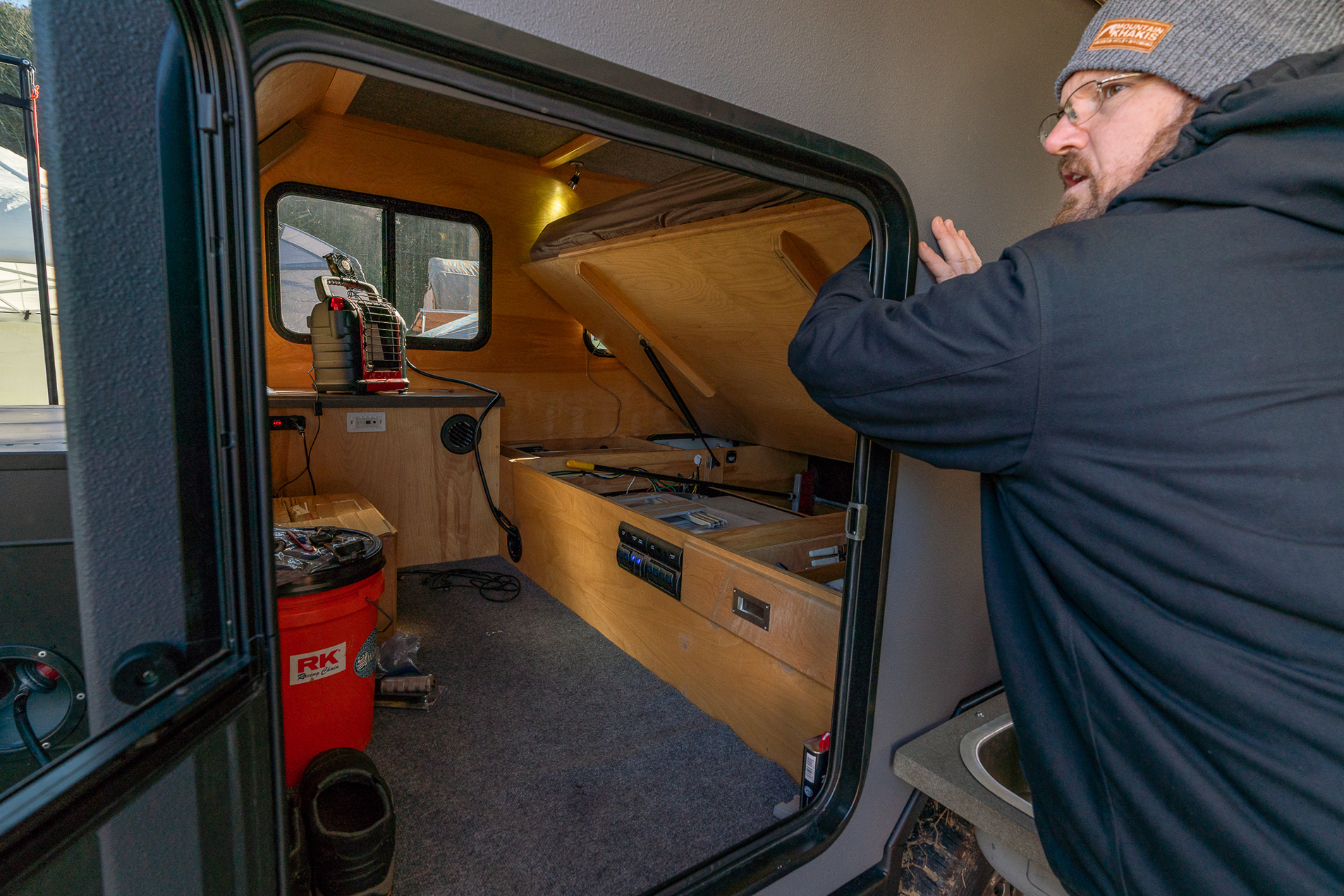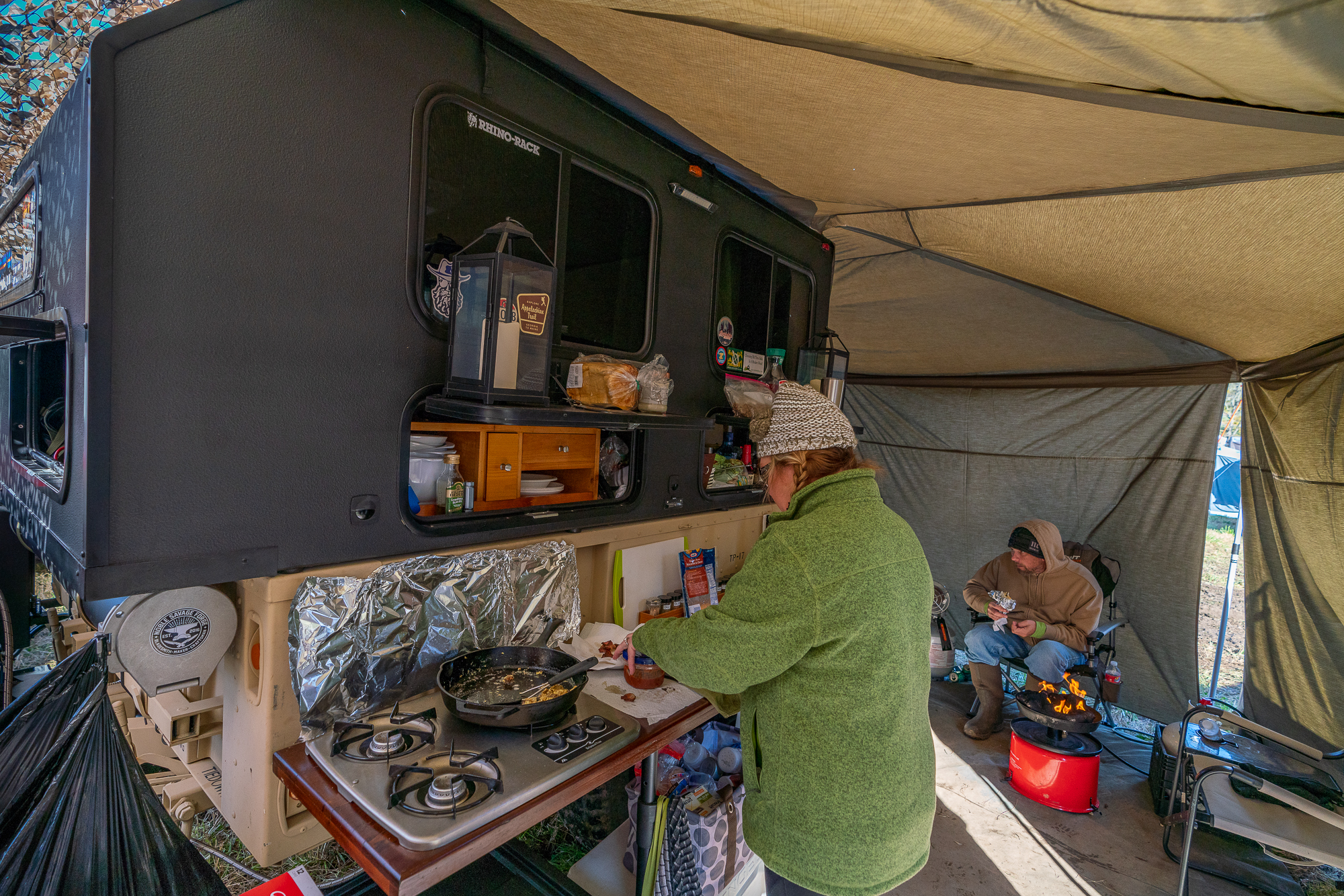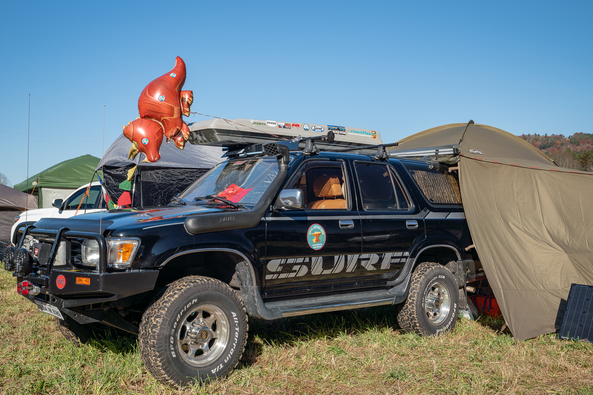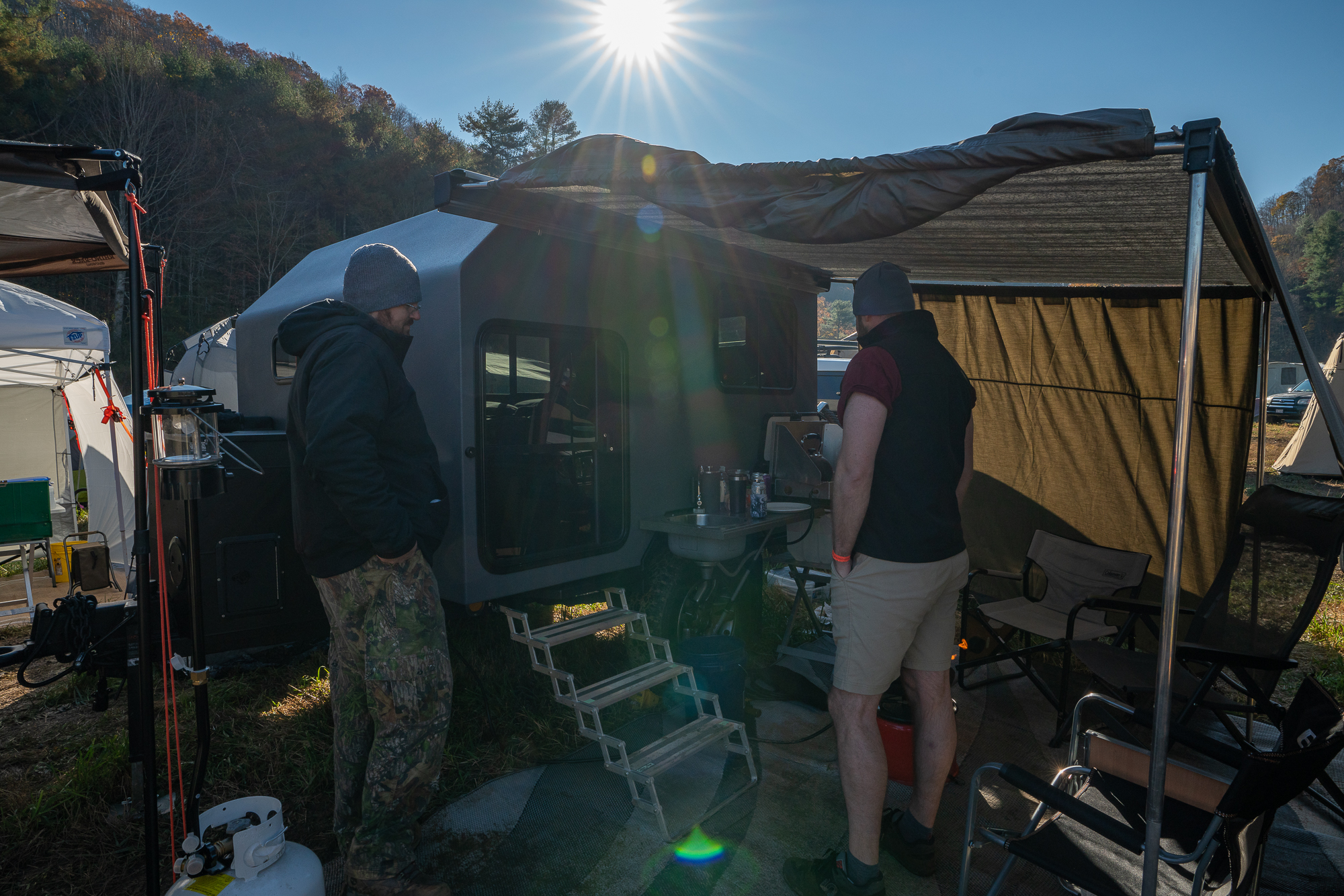 While adventure and overlanding clubs are common, the members from Anvil Adventures had staked their claim at Expo East early, erecting a tent city that Ringling Brothers would find tough to fill. The most interesting features of this club were its diversity of vehicles, their numerous homemade adventure trailers, and the complete embrace of self-deprecating humor, to include the fluttering dinosaur balloons scattered around camp and hilarious demonstration of their prized 12-volt toilet.