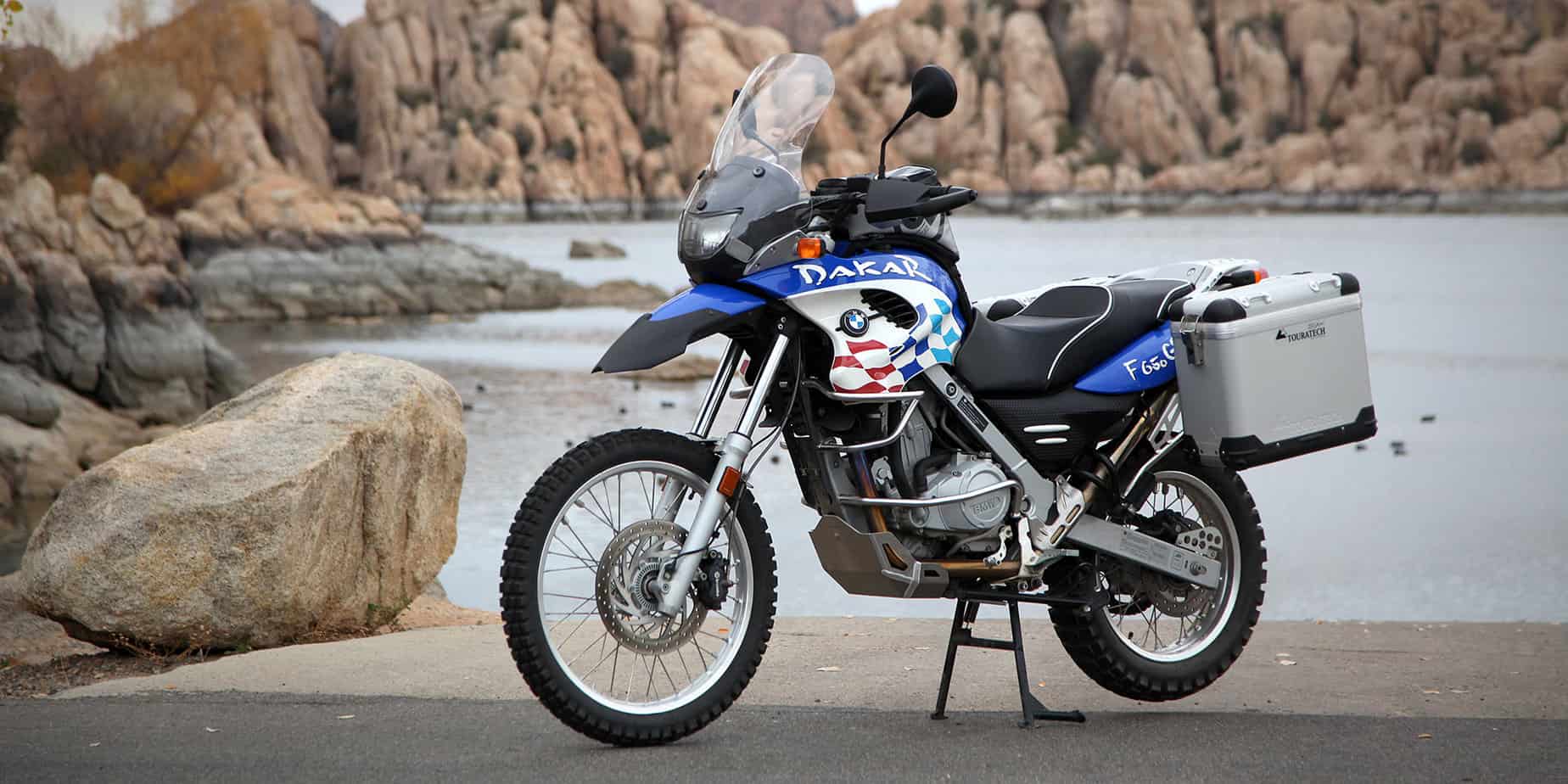 Last fall, with a summer’s worth of motorcycling still coursing through our veins, a discussion was started about the virtues of inexpensive adventure bikes. There’s no doubt a BMW R1200GSA water-pumper is a great bike, but it’s also pushing $25,000 by the time you bedazzle it with all the prerequisite farkles. The “B” in BMW does not stand for “budget” unless you’re looking at second-hand models like the highly regarded F650GS Dakar. Early models can be had for a song, and like many mass produced motorcycles, can be found in exceptionally good nick. We acquired such a prize and with our friends at Touratech, set out to make it as adventure ready as possible. With the last accessory bolted in place, I dare say it’s just about perfect.