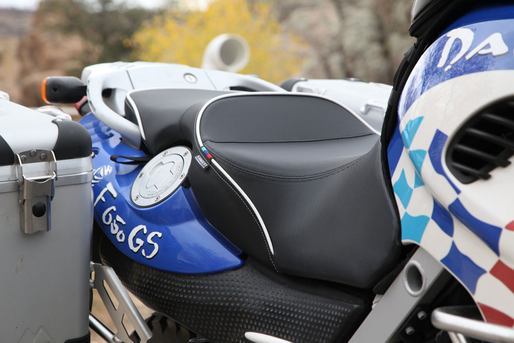 Continuing the refinements to the ergonomics, we sent off the OEM seat to the gurus at Sargent Cycle to have it rebuilt with their amazing Performance Plus conversion. The new seat not only features improved foam carved to a perfect shape, it is covered in fabrics designed just for adventure riding. The new seat transformed the bike into a long-haul machine, and greatly improved the overall aesthetics of the bike.