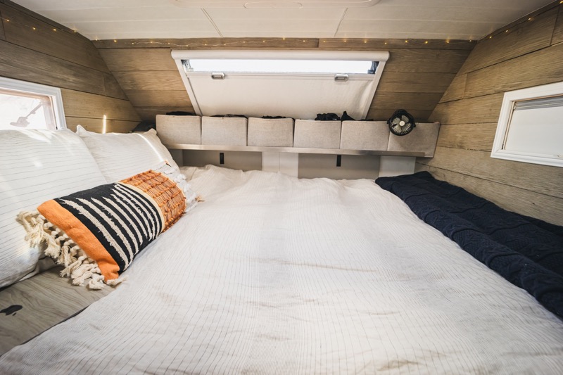 Ample living space was important to Kszos for several reasons. The height of the camper is around six-foot-eight, and at five-foot-ten with a propensity for claustrophobia, Lindsey feels comfortable working and living inside. Two large Tern Overland windows, one located on the front of the camper, and one on the side wall, allow plenty of natural light inside.