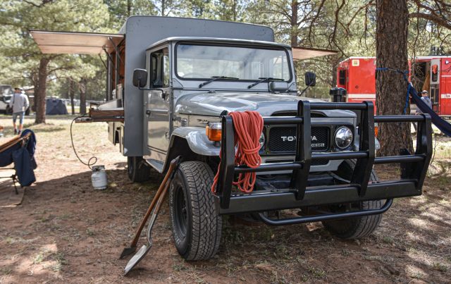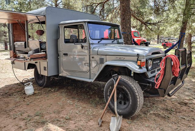 Michael Choi and Lauren Berra enjoy the great outdoors; they visit national parks, rock climb, snowboard, and camp. It has long been their desire to build an adventure vehicle, but they wanted it to be unique. Michael, a mechanical engineer, recalls seeing an “old-school” Land Cruiser online and thinking it would be cool to source a pickup and equip it with a camper. In early 2020, the couple struck gold and found a 1981 Toyota Land Cruiser Emergency Response vehicle from Australia, which they believe was used by the government or possibly as a utilities support vehicle. Without hesitation, they drove out to have a look at it and found the perfect base for a project vehicle; the open concept immediately came to mind.