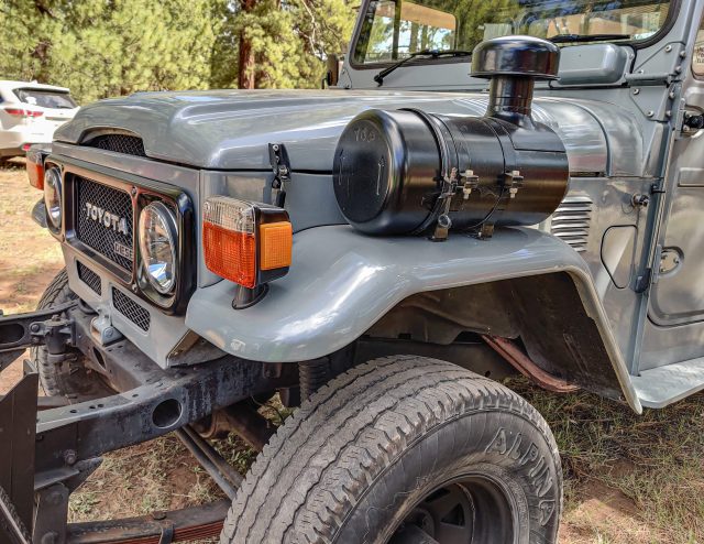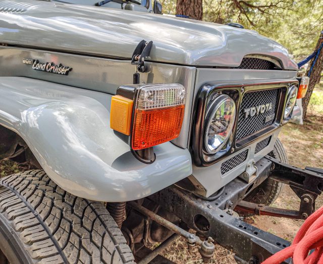 Over the following months, the loving duo painted the vehicle inside and out, including some bodywork with Bondo, which required removing the box and verging dangerously close to a frame-off restoration. It is spooky how quickly a simple budget concept can evolve into a deep-dive-rebuild, money-pit monster. With the large surfaces shining, attention turned to the trim: wheels, bull bar, wiper arms, Donaldson air cleaner, door handles, speedo gauge, glovebox. If it didn’t move, it got a lick of paint. A dig into the budget bought new turn signal covers, replacement LED headlights, new LED markers, speedo bulbs, and a matching blinker relay. Those old Cruisers can be as noisy as a coal train, and sound deadener in the cab combined with a new roof headliner can go a long way to making those long trips less exhausting. With the old patina resigned to the past where it belongs (some might say), attention turned to general maintenance and service, a new battery, oils, filters, hoses (a popped hose left them stranded near Vegas), fluid flushes, glow plugs, a new front driveshaft, and new shocks. Fresh, new glass followed soon as Michael had cracked the old windscreen during the paint assault, and a neighborhood reprobate broke a passenger window armed with a lower-than-average IQ.