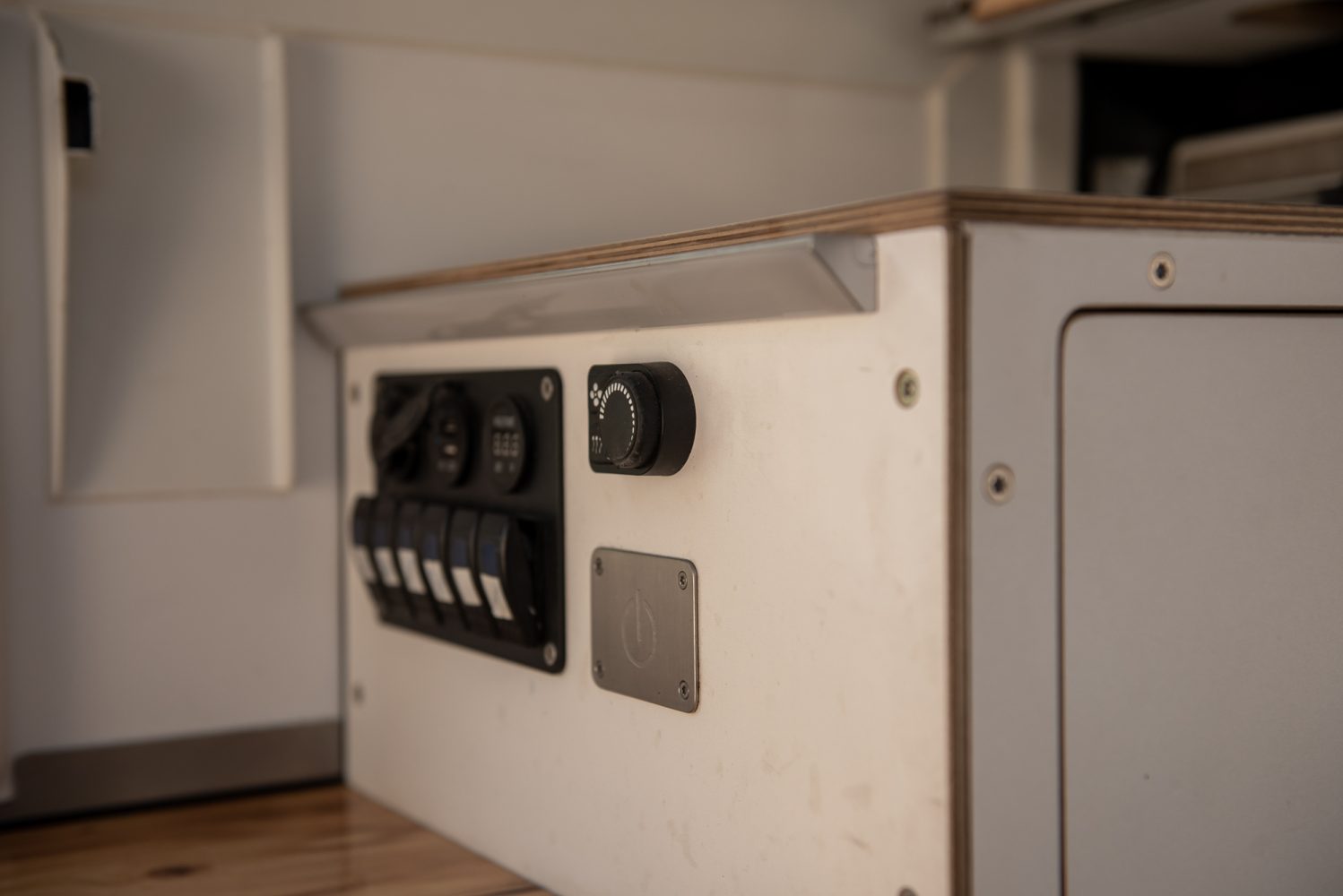 At first, we weren’t sure if we should install fixed interior lights, but this was the best decision ever. In addition, we have sockets everywhere for reading lamps or chargers, but the large lights make the room very bright and cozy.