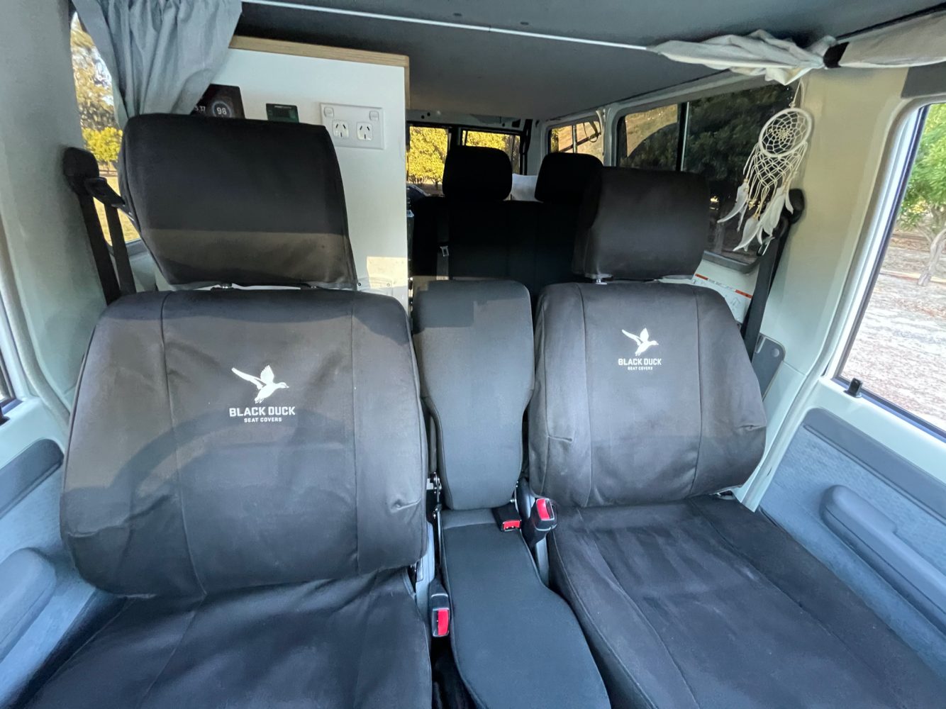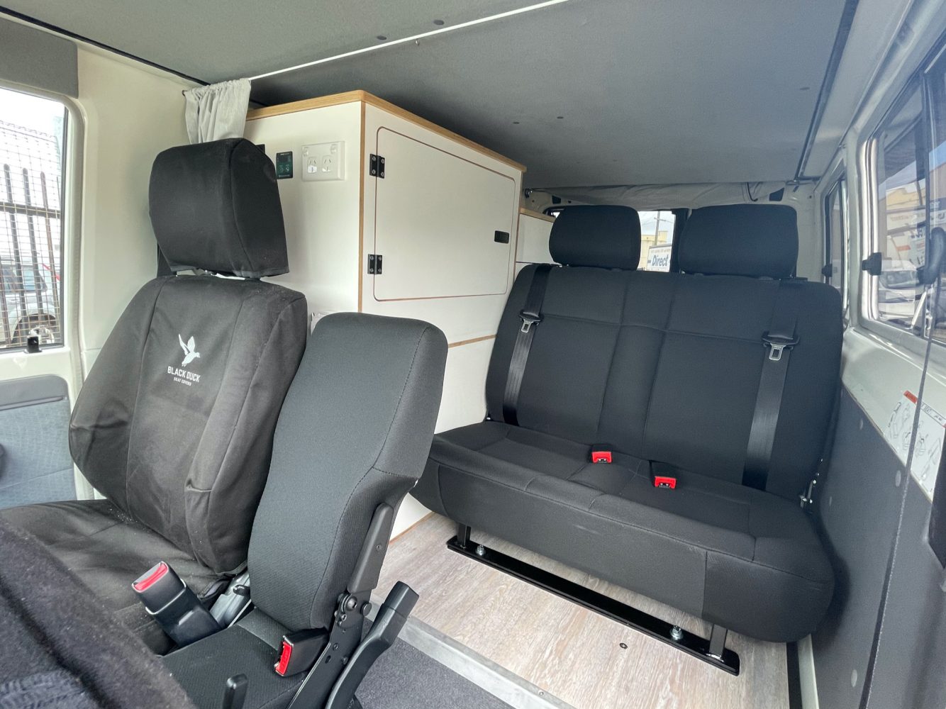 The interior configuration changes when Marlee embarks on trips with three or more people, which speaks to the modular nature of the build. “I use the large cabinet behind the passenger seat for storage when doing a longer trip with one or two people. The cabinet can be removed so a double seat can be put in its place. The seats are Techsafe. The double seats also have child seat anchors for the little ones.”