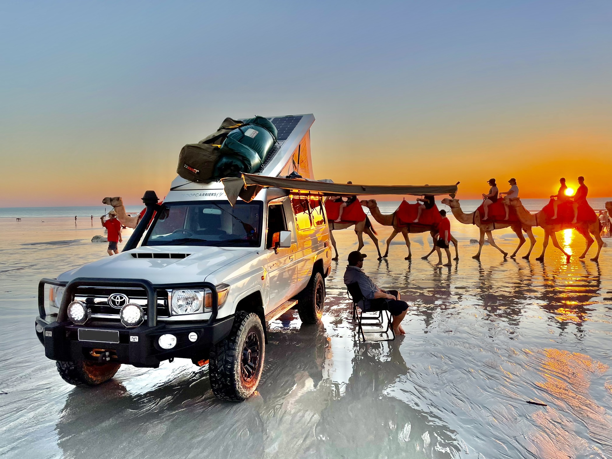 Based out of Sydney, Australia, the Expedition Centre supplied and fit this 70-Series with a Mulgo pop-top. She explains that the Mulgo stood out against its competitors due to its internal locking, hinges, and three large-screened windows. “It only adds 35 millimeters to the height and has clean lines following the shape of the Troopy. There are also integrated anchor tracks on the roof, making it a fully load-bearing roof platform, with a watertight but breathable Airtex canvas, a 120-millimeter bed width, and [is] certified Australian-made.”