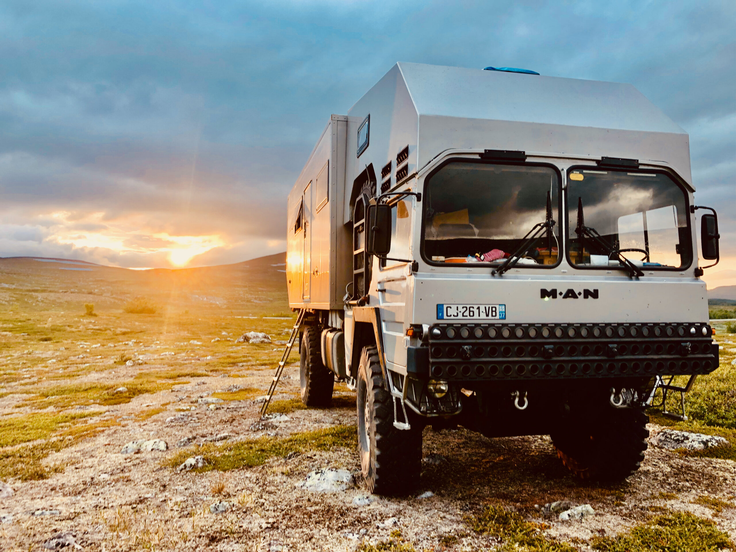 The first time I set eyes on this epic MAN Kat 1, I was parked across the bay in Reine, Lofoten Islands, and distinctly remember thinking, “What in the name of Tolkien is that?” (or words to that effect). I rushed over, letting out the occasional childlike giggle of excitement (not dissimilar to a Chucky Doll), and with every step, the truck seemingly grew larger. Finally, I was face-to-face with a real-life monster; with adoption papers in hand, I was ready to meet my new parents (a boy can dream). Living on the road, I see a lot of larger vehicles (the Leyland DAF T244, Mercedes 1622, MAN LE160C, and Iveco Eurocargo are frequently sighted here in Europe), but Boris Malesset’s “Darth Vader” is in a totally different league.