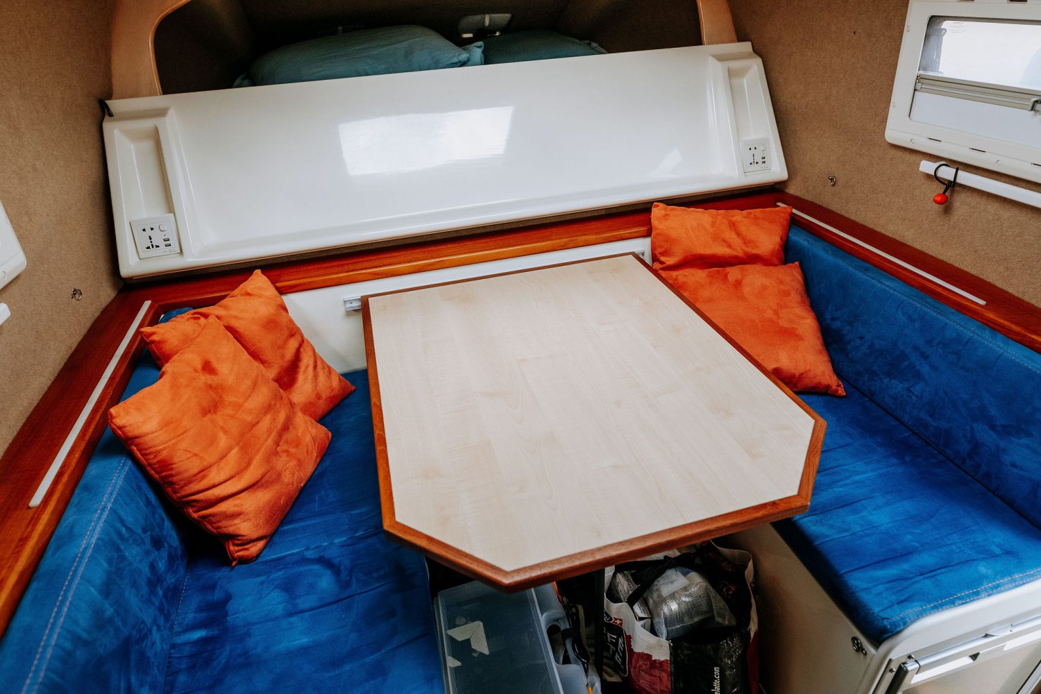 For Marcel and Chiara, a removable camper cell wasn’t in the cards. “To me, and again, this is a very personal preference, [a removable camper] is suboptimal because you have to compromise space and weight,” Marcel says. The couple wanted to replace the bed with a more permanent solution, but manufacturers who could do so in Europe formed a short list. “My choice fell to an Austrian company—Geocar,” Marcel explains. “They offer a high level of customization, and the manufacturer was open to letting me complete the interior.” The owner of Geocar, Arno Klenkhart, is a former airplane technician with a penchant for embarking on off-road trips through the Sahara. His eye for functionality and design culminated in a product that Marcel was drawn to for various reasons. “It adapted to a four-door Ranger, included a portal connecting the cabin to the cell, and has lots of windows and plenty of light. Other attractive features included a lightweight but strong and flexible composite technology designed to cope with torsion forces rather than a solid box that could be subject to stress. “[It is also] aerodynamic and cool looking,” Marcel says with a smile.
