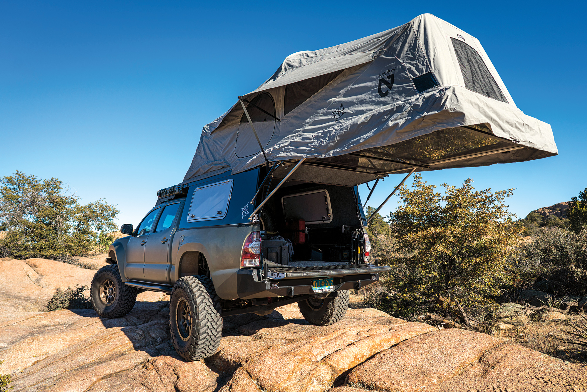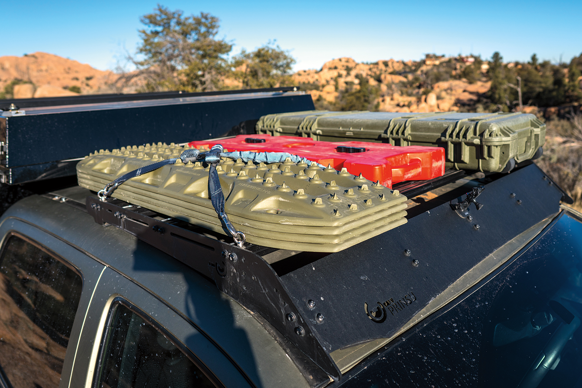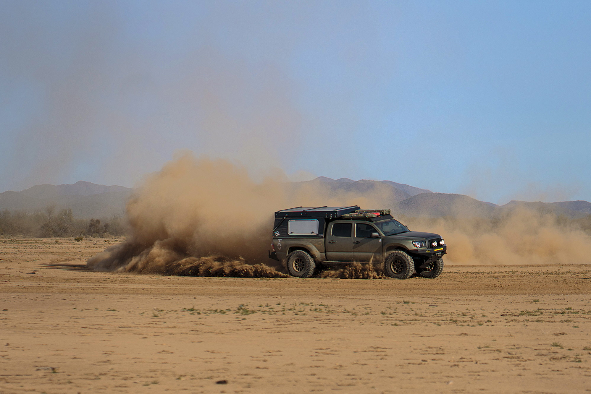 Every overland vehicle is only as good as the base vehicle it is built upon, and there are few North American platforms as respected as the Toyota Tacoma TRD, this particular unit being a Sport 4-door long-bed. The stock 4.0L V6 was augmented with a Magnuson supercharger, the results of which significantly increased horsepower and torque, and added that classic gear spooling whine. It is typically best to leave an engine stock, but Walt has found this unit to be reliable with long-term use. The results are impressive, and with the 5.29:1 axle gearing, I watched Walt drift this truck the length of a football field on private property outside of Tucson, Arizona. Acceleration is strong, and the boost helps mitigate loss at higher elevations. To accommodate the increased power and 37-inch tires, the TAV team specified a 69-inch Currie F9 rear axle. The wider track width helps to offset the higher center of gravity, and the stronger housing ensures the Tacoma can bear a full payload. To match the rear, a Total Chaos 3.5+ inch, long-travel front suspension was installed, along with longer RCV axle shafts.