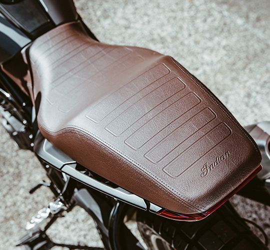 The FTR Rally comes standard with Pirelli Scorpion Rally STR tires which are mounted on wire-spoked aluminum wheels with red pinstripe accents. The FTR Rally also has ProTaper handlebars, resulting in a hand position that is 2 inches higher than the other FTR models for better control and comfort. Finally, the “titanium smoke” paint job and rally console badge visually set the FTR Rally apart from the rest of the line. The tiny rally windscreen, brown aviator seat, and analog speedometer round out the basic-but-stylish retro look of this bike. If you really want your bike to stand out, you can customize the FTR Rally with any of the 40+ accessories offered by Indian for the FTR line.
