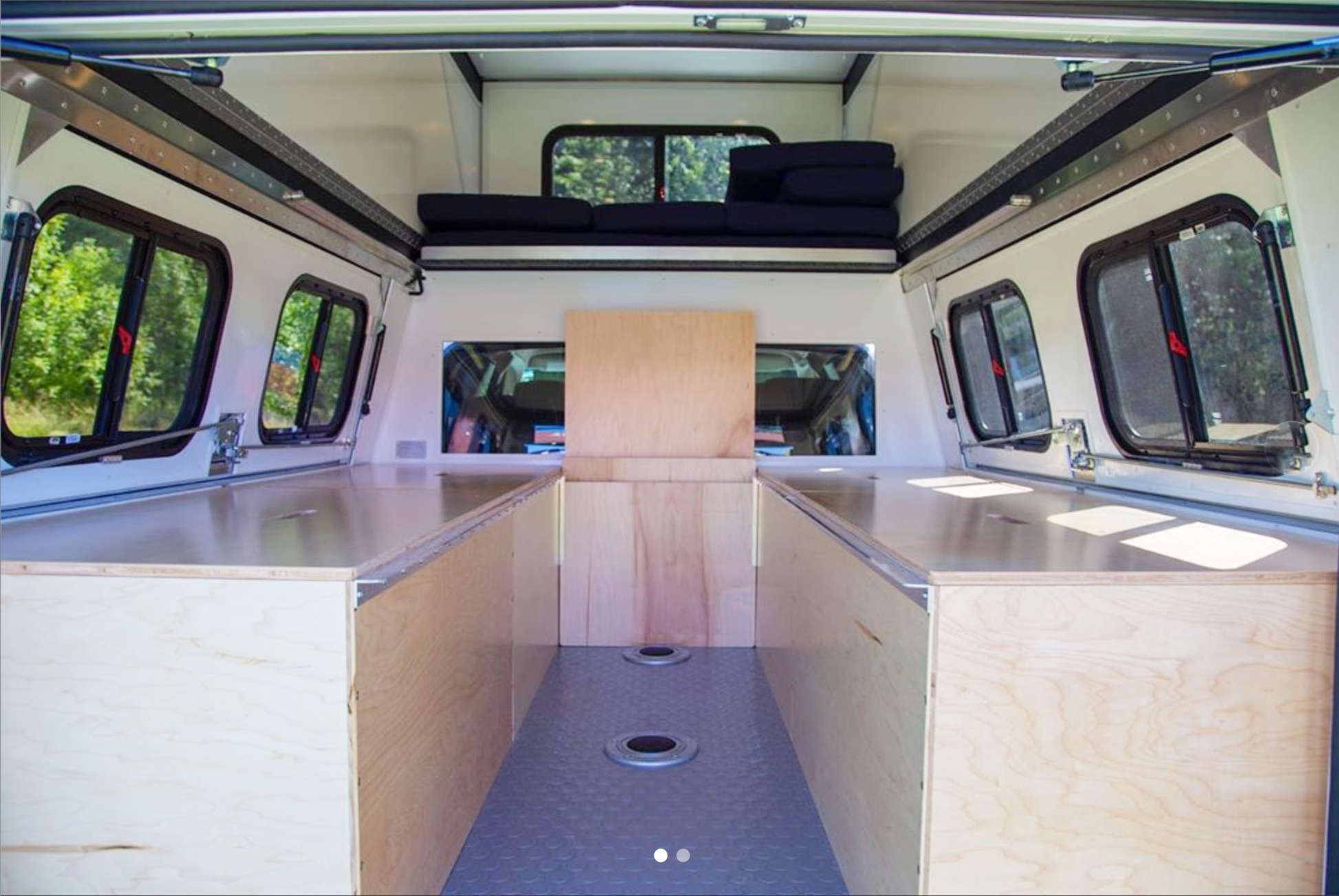 If you need more headroom or a larger sleeping platform, Hiatus can accommodate your needs with a custom design. If you haven’t already, Hiatus recommends upgrading your vehicle suspension with additional leaf springs or airbags to accommodate the extra weight of their camper prior to installation.