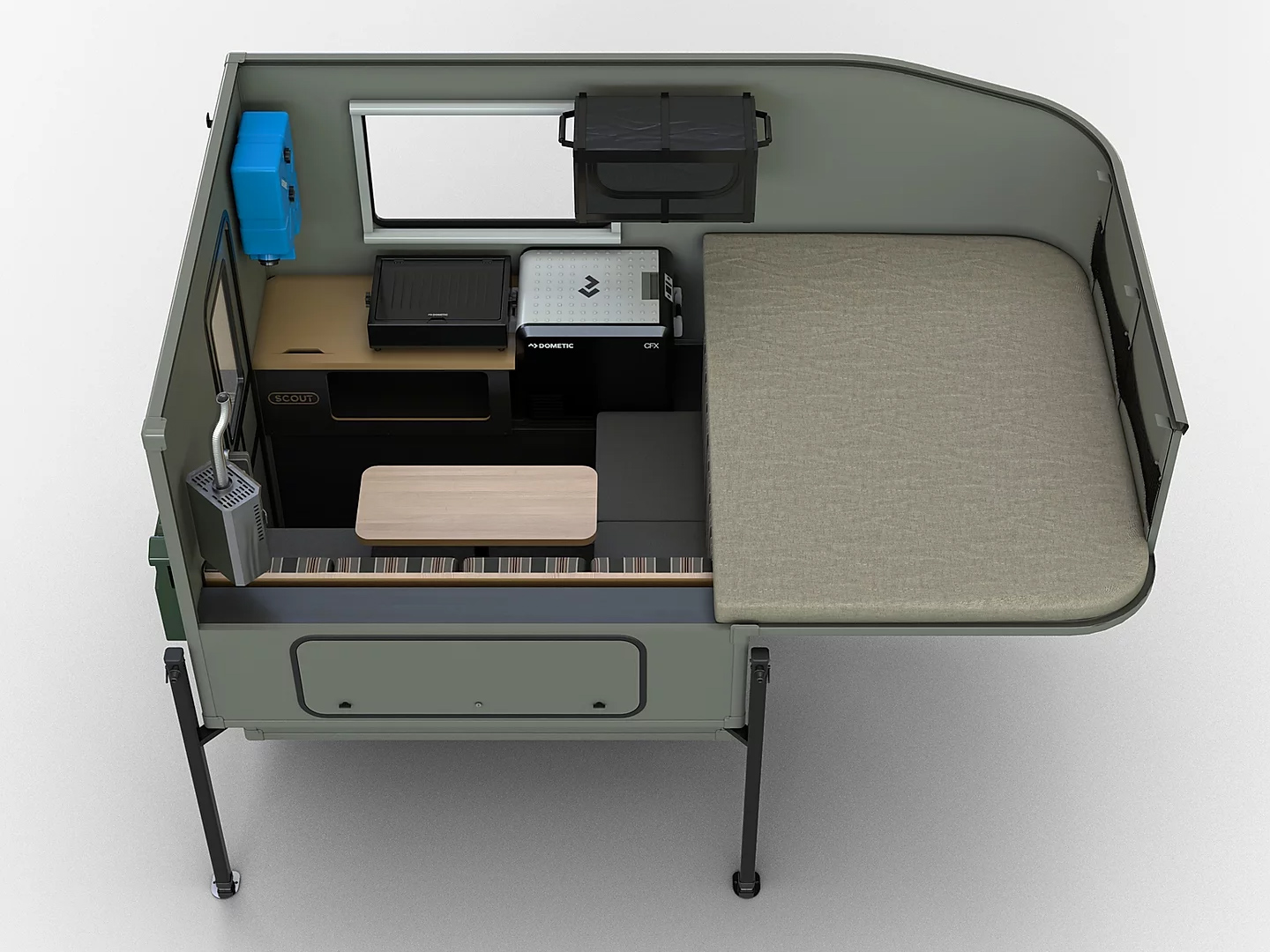 Tipping the scales at 913 pounds dry, Scout claims that their Yoho camper is the lightest truck camper in the industry, the idea being that “you can now pack more gear and worry less about payload capacities on your off-grid adventures.” The Yoho is ideally paired with mid-sized trucks like the Ford Ranger, Toyota Tacoma, or Nissan Frontier.