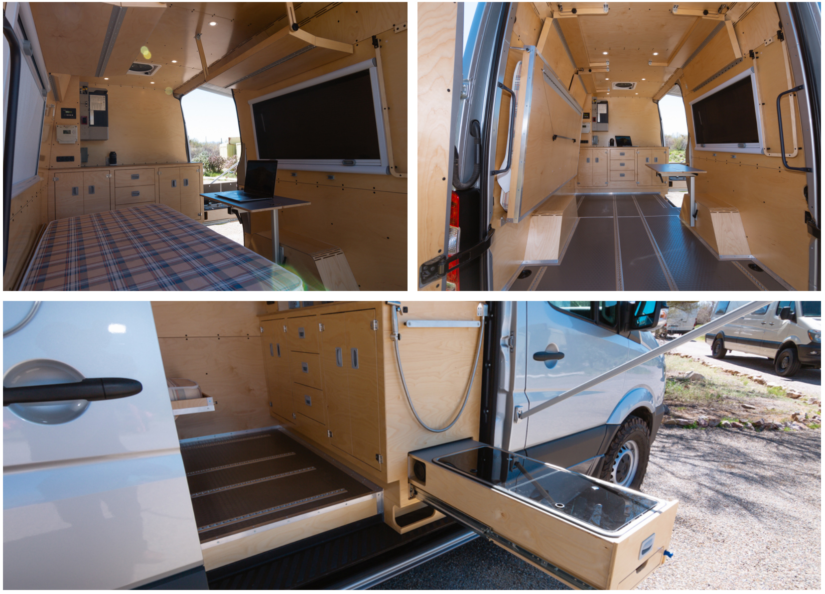 Campervans excel at providing a comfortable retreat for road trips and extended adventures, but because they are such specialized vehicles, they don’t multitask very well. For instance, very few upfitted Mercedes vans are going to function well for long-term travel and as work vehicles. But MVAV has an answer to this dilemma: their Minimalist and DIY models are both stripped down and multi-purpose in their design.