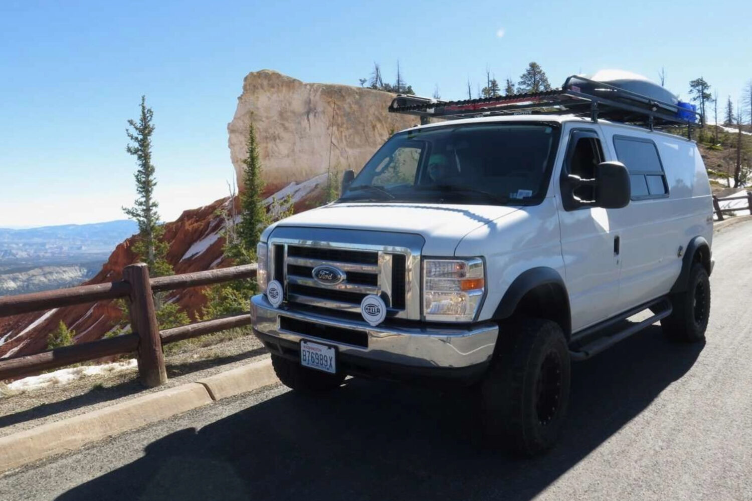 The Toketee – The Chinook word toketee translates to graceful or pretty, and it describes the layout perfectly. This simple campervan is built around belted seating for five passengers (including the driver), which makes it an excellent choice for a family that doesn’t mind packing into a small space (sleeping pads on the floor) or setting up a ground tent to more comfortably accommodate everyone at camp.