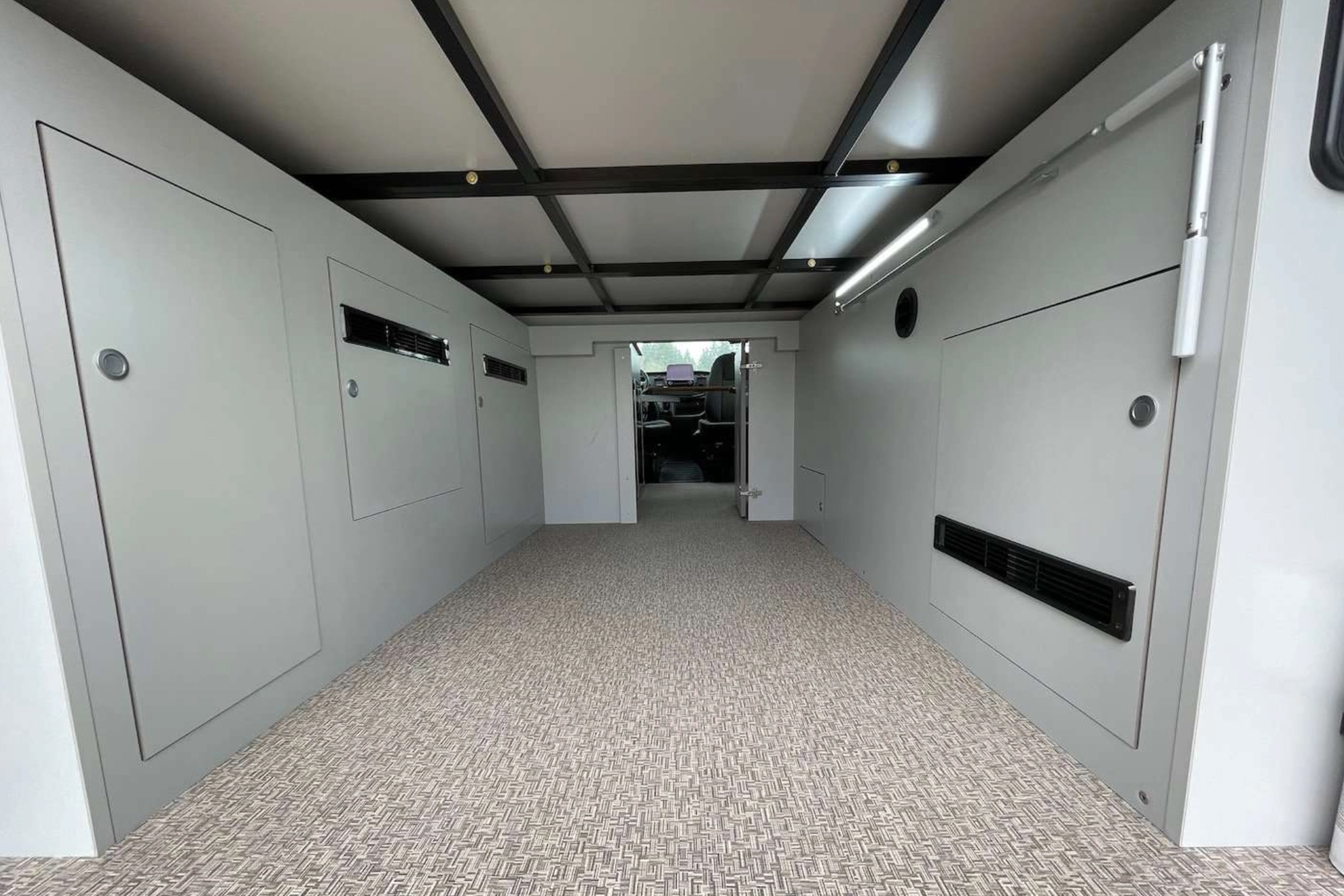 Van Haus offers three pre-designed campervan layouts to fit a variety of travelers’ needs by prioritizing between storage space and belted passenger seating. All three feature a driver’s side galley with a refrigerator, sink, overhead storage, noise-reduction mat, and four-season insulation. But this is where the similarities end.