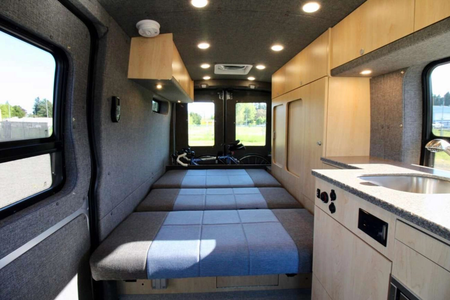 Van Haus Conversions was born, and together with a skilled team of craftsmen, Erik now offers three different floor plans as well as custom projects to fulfill the needs of adventure athletes, remote workers, and weekend warriors. Van Haus currently works on either the Ford Transit or Mercedes Benz Sprinter platforms, but they have also previously upfitted the Ford Econoline.