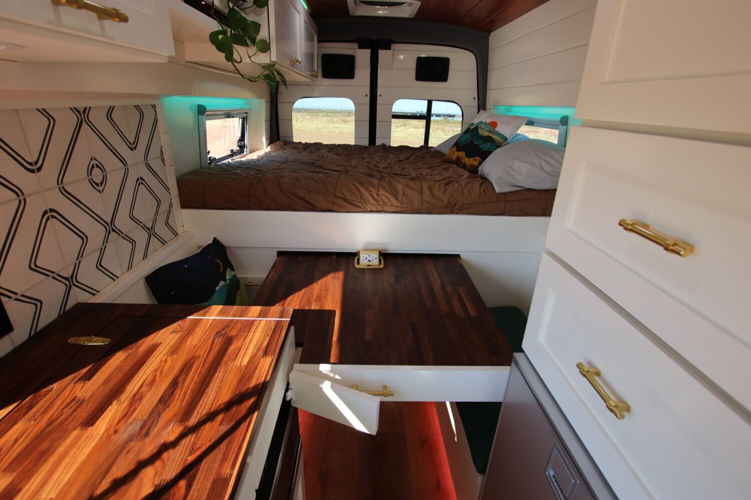 All conversions are one-off custom projects specifically designed for the individual. Do you like to surf? They’ll design a pass-through from your gear garage into a bench in your living space so that your surfboard can fit. Are you a mountain biker? In that case, a slide-out tray with bike mounts could help you pursue your passion just a little bit easier. The idea is to build the campervan around the individual instead of asking the individual to adapt to a pre-designed layout.